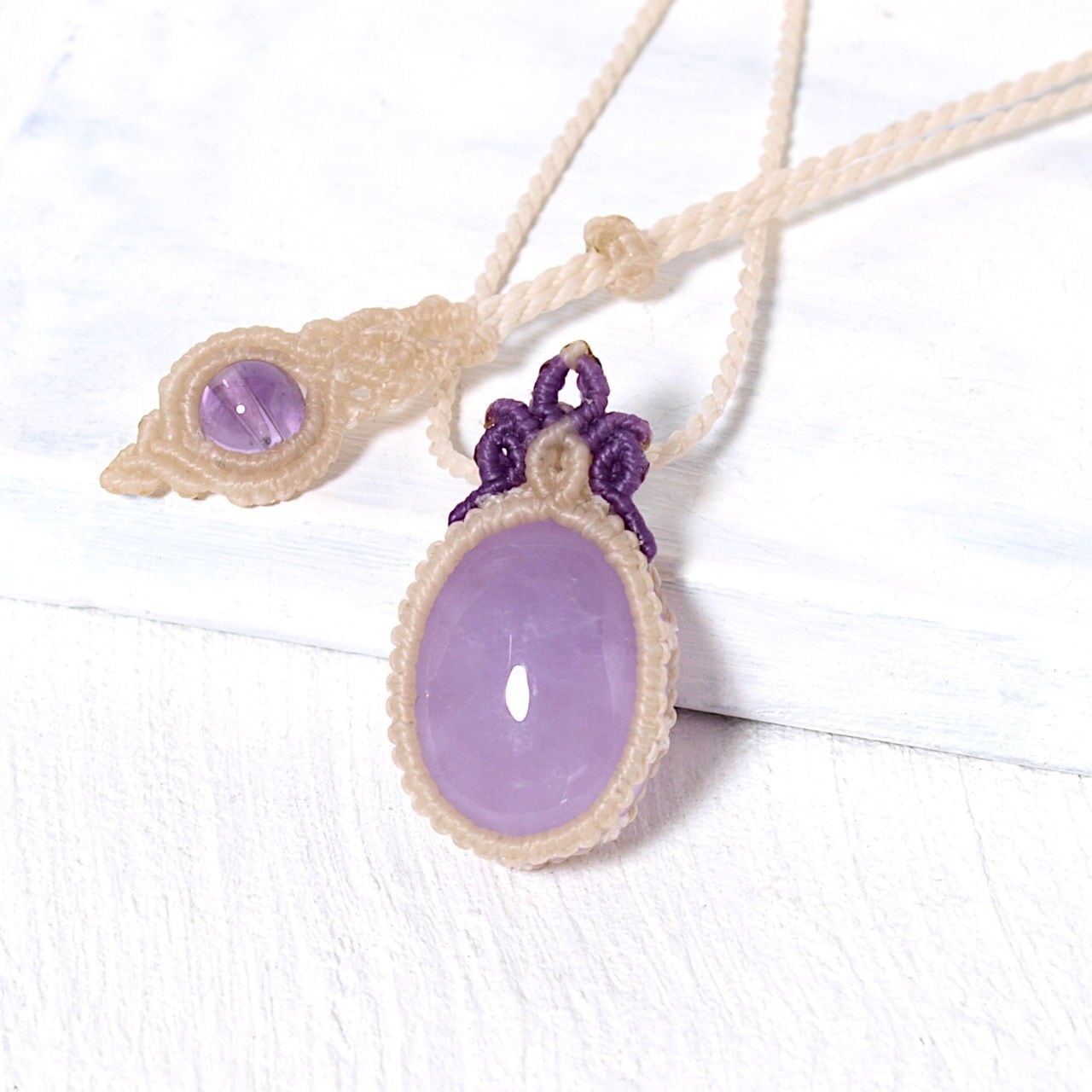 【一点物】ライトカラーアメジストのオーバルルースを包んだマクラメネックレス