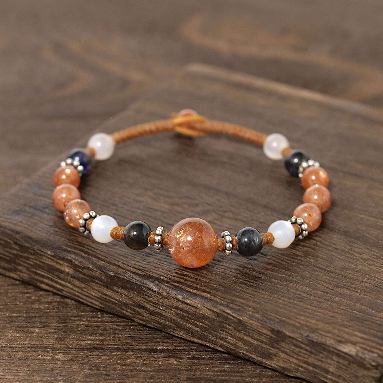 ムーンストーン+サンストーン+アイオライト6ミリ玉ナチュラルマクラメブレスレット