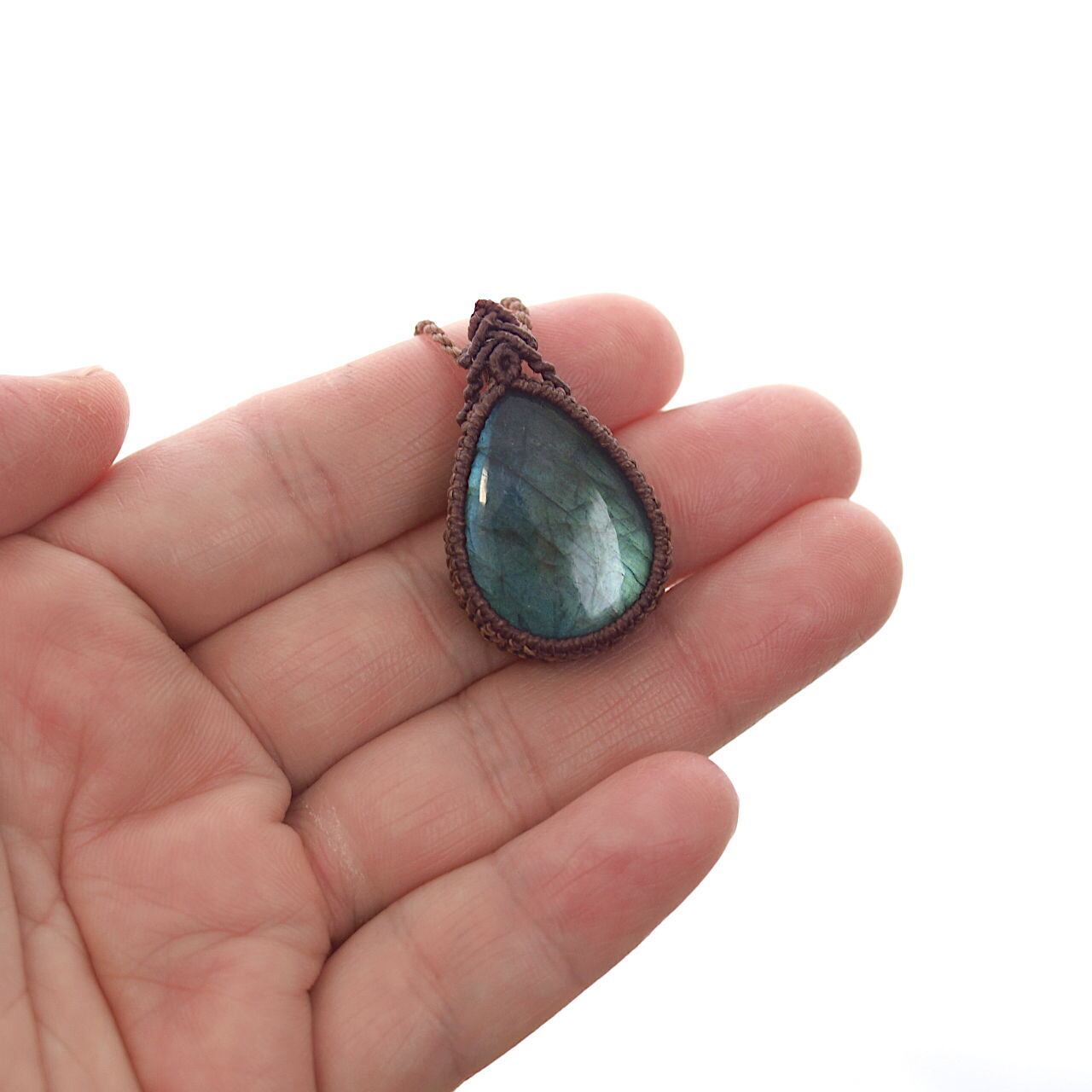 【一点物】ラブラドライトのルースを包んだマクラメネックレスNo.13