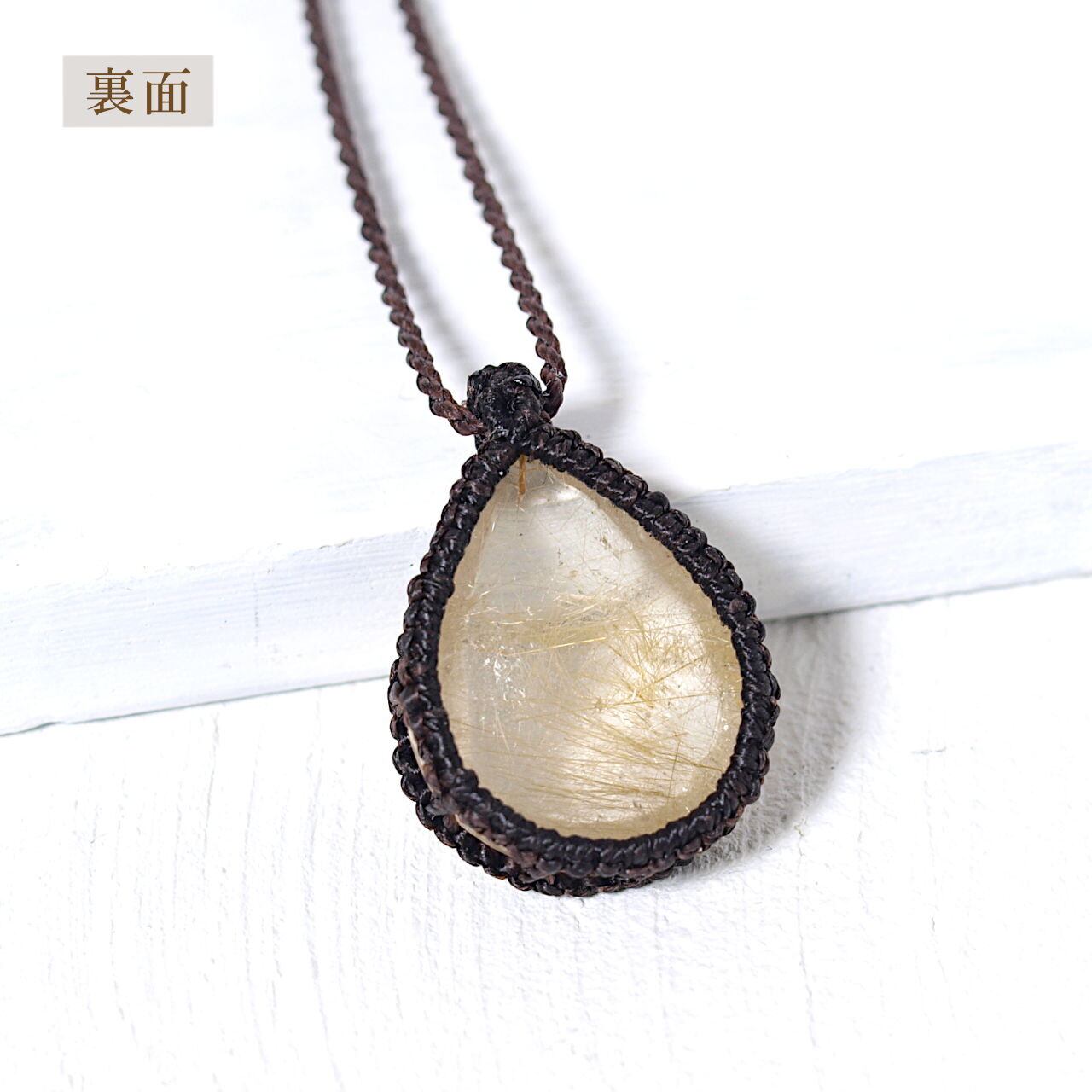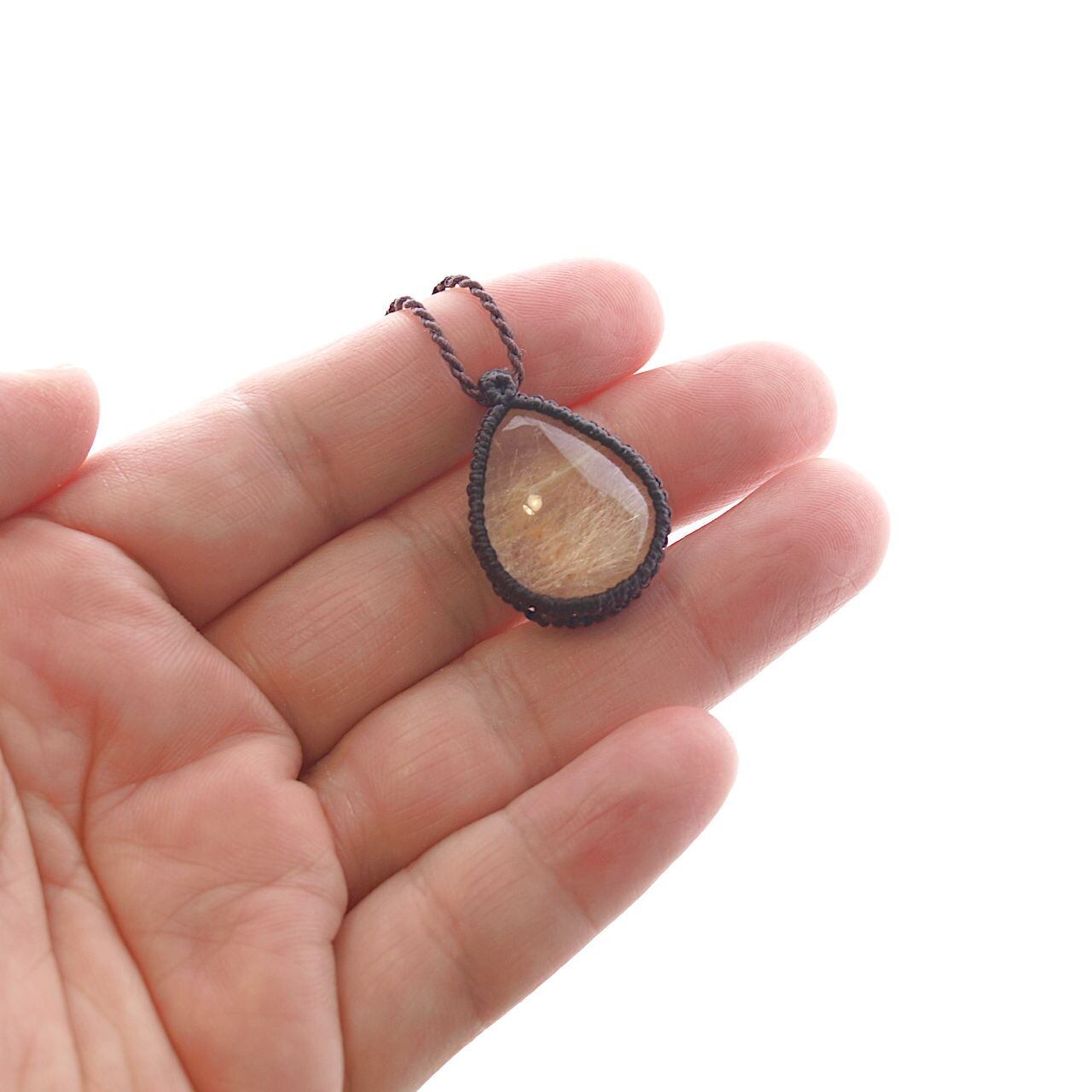 【一点物】エンジェルヘアールチルクォーツドロップルースを包み込んだマクラメネックレスNo.1