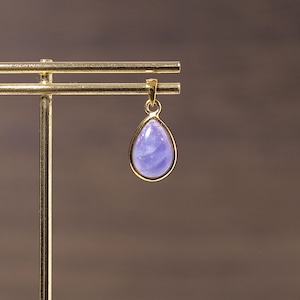 色変化前は少しグレーがかったようなラベンダーパープル。紫外線を浴びて濃くなると赤みのある紫色に変化します。どちらの色あいも上品で優しい雰囲気です。石を眺めていると、本来の自分らしいニュートラルな心持ちに整えてくれるような癒しを感じられるでしょう。