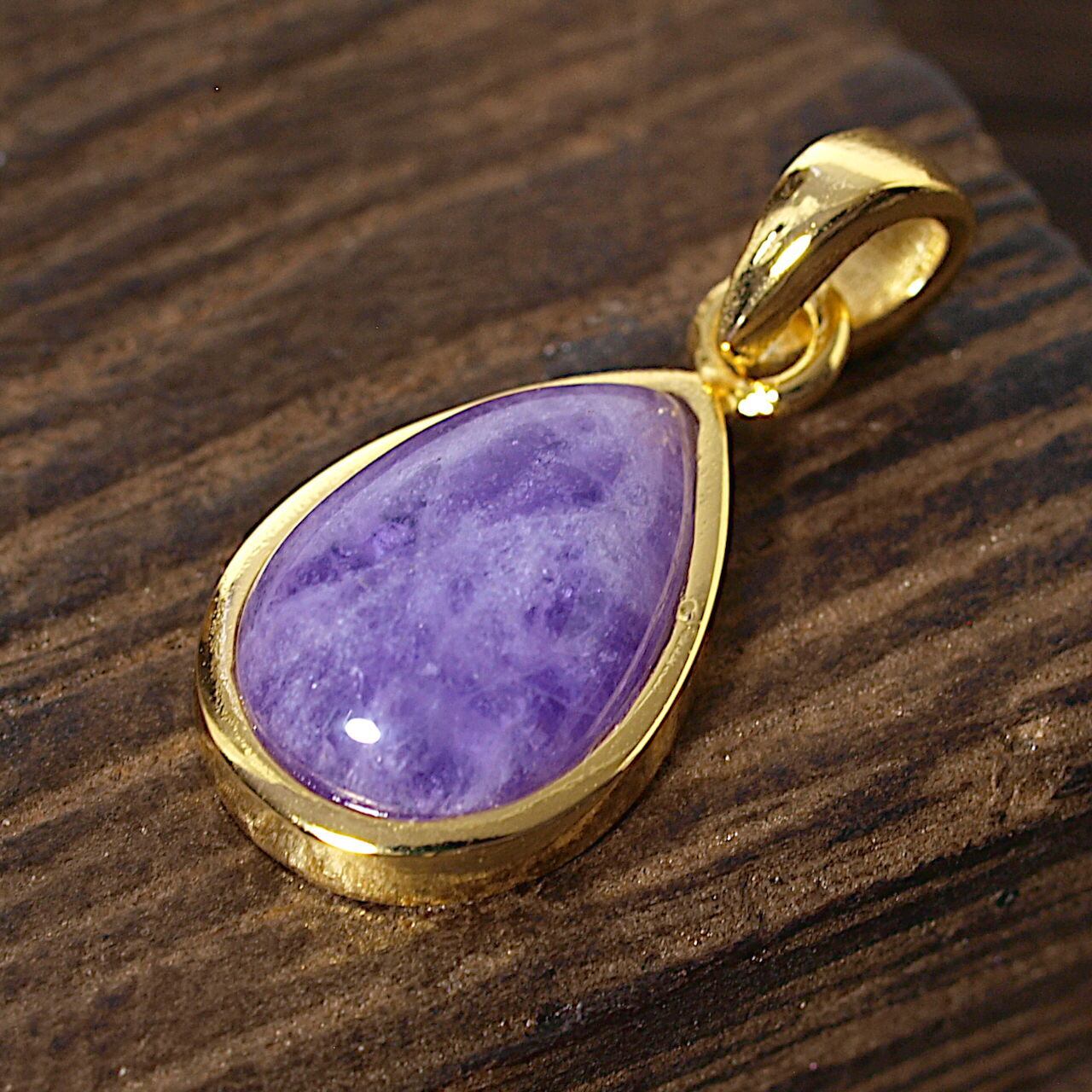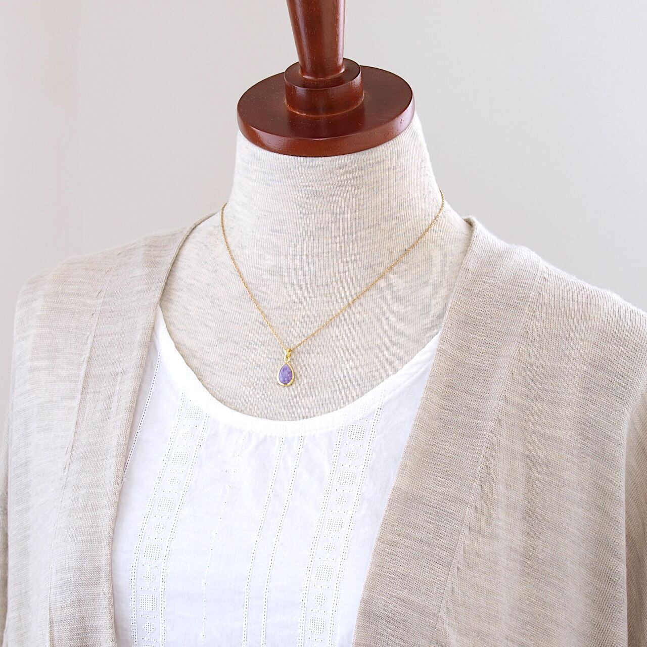 色変化前は少しグレーがかったようなラベンダーパープル。紫外線を浴びて濃くなると赤みのある紫色に変化します。どちらの色あいも上品で優しい雰囲気です。石を眺めていると、本来の自分らしいニュートラルな心持ちに整えてくれるような癒しを感じられるでしょう。