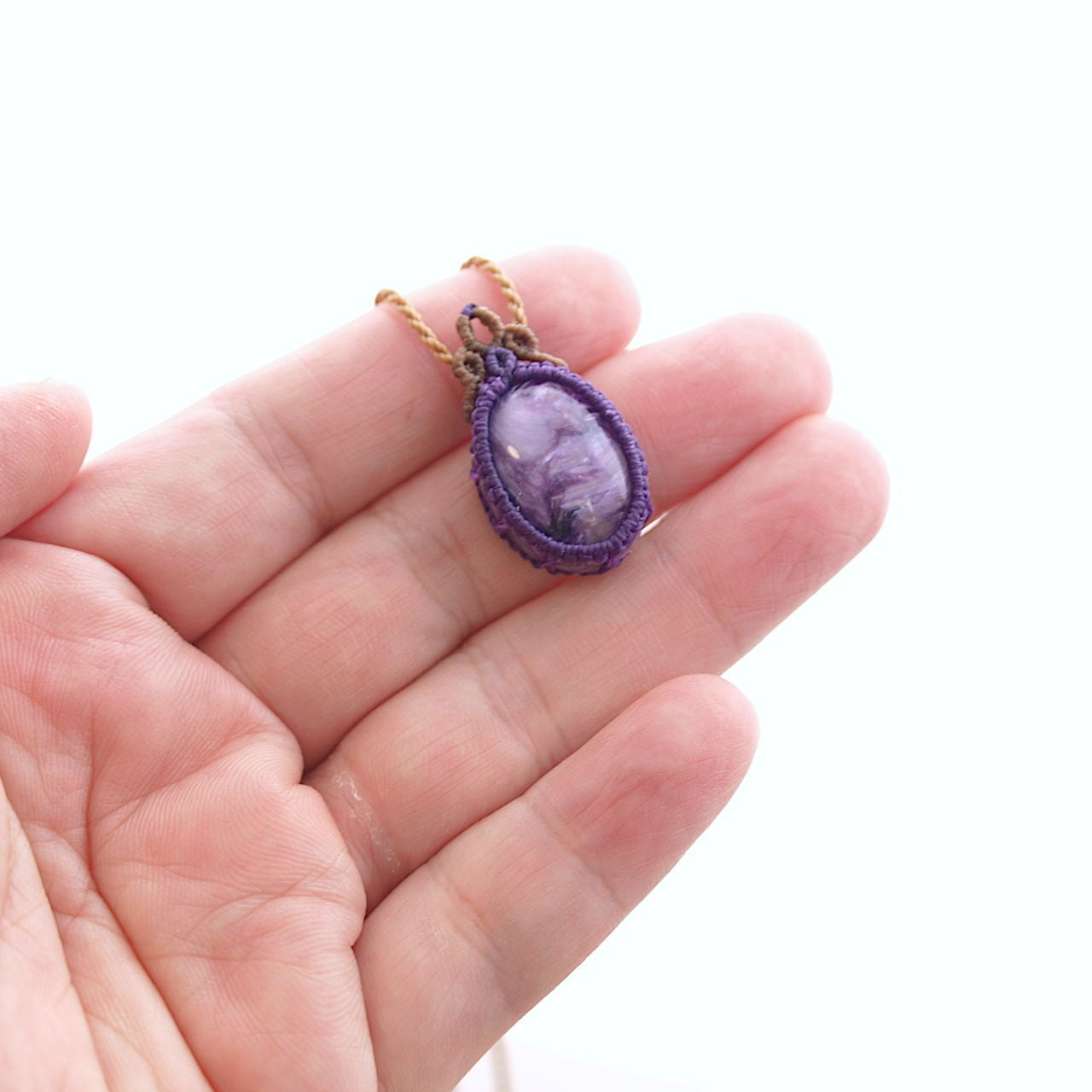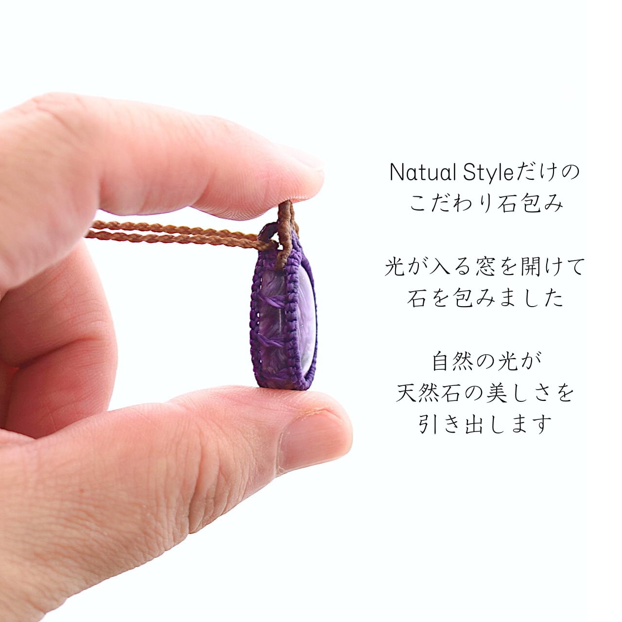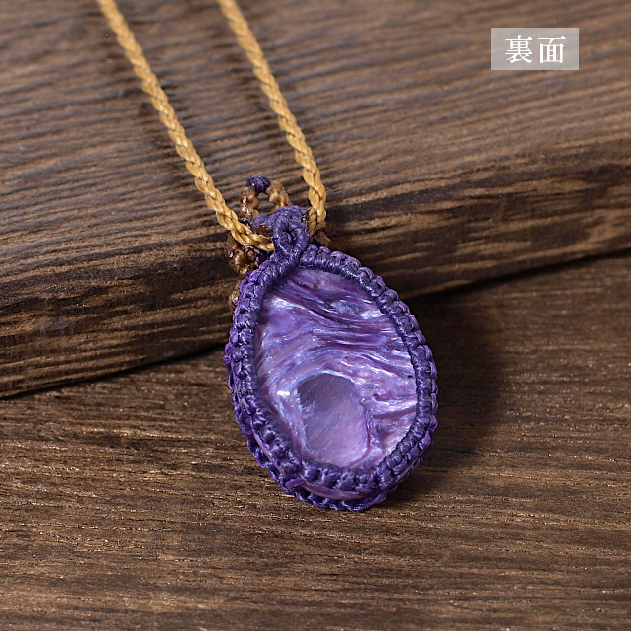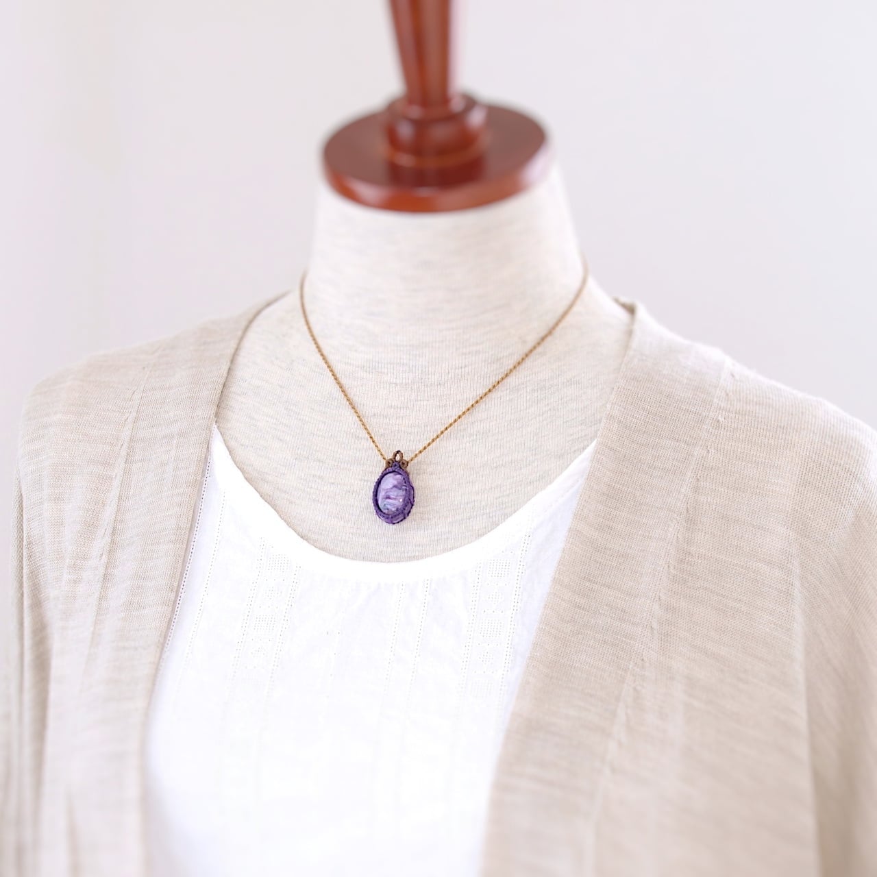 【一点物】チャロアイトのオーバルルースを包んだマクラメネックレスNo.7