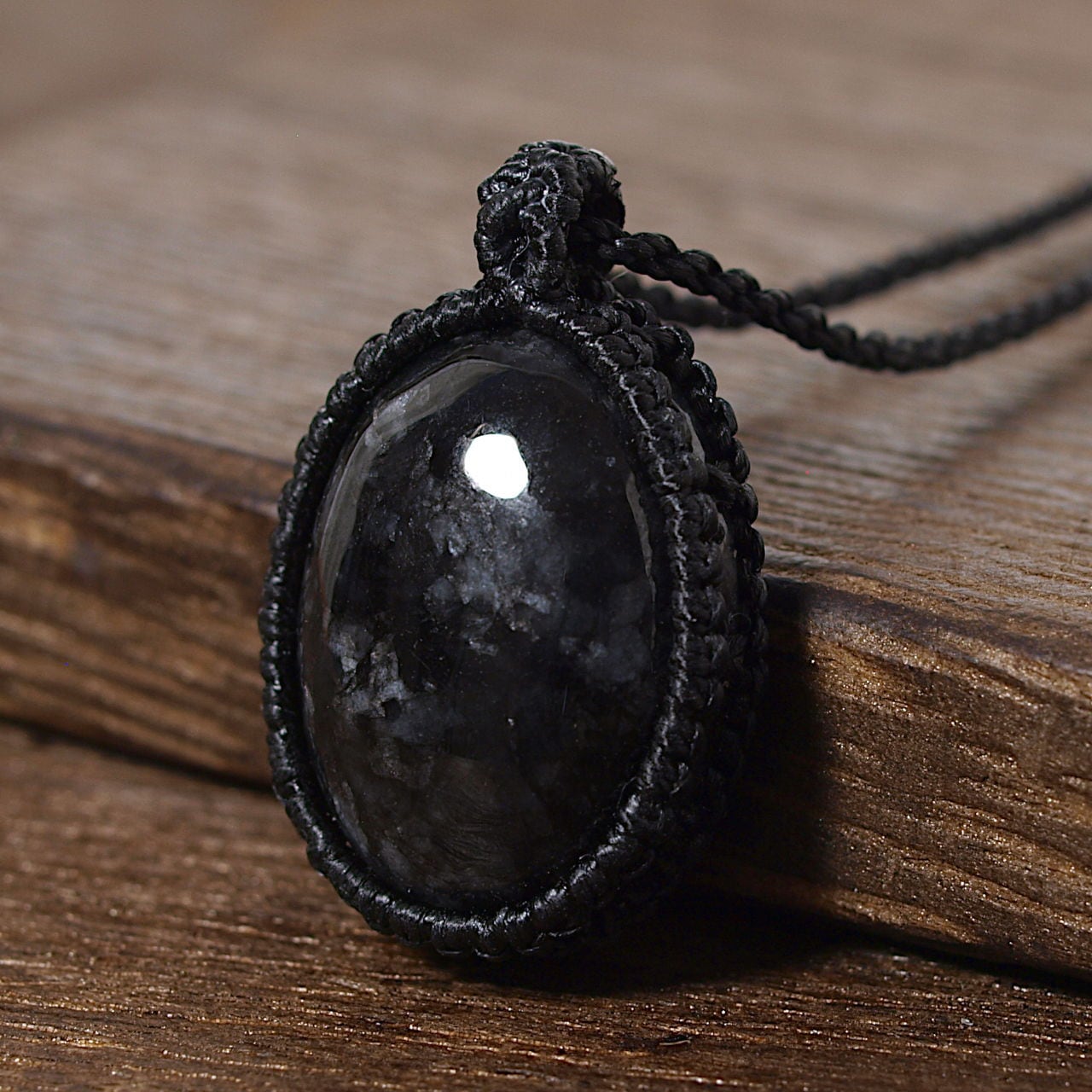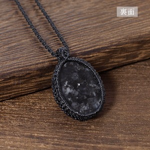 【一点物】黒翡翠のオーバルルースを包み込んだマクラメネックレスNo.3