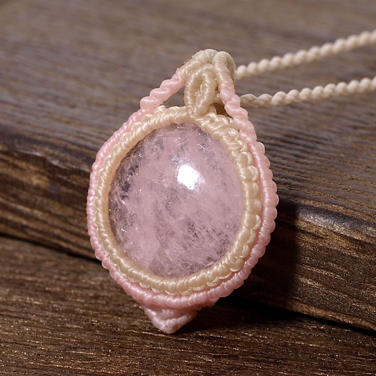 【一点物】モルガナイトのルースを包んだマクラメネックレスNo.2