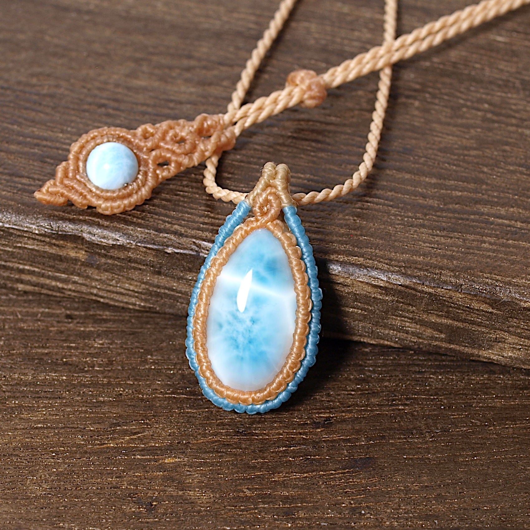 【一点物】ラリマーの雫ルースを包んだマクラメネックレスNo.2