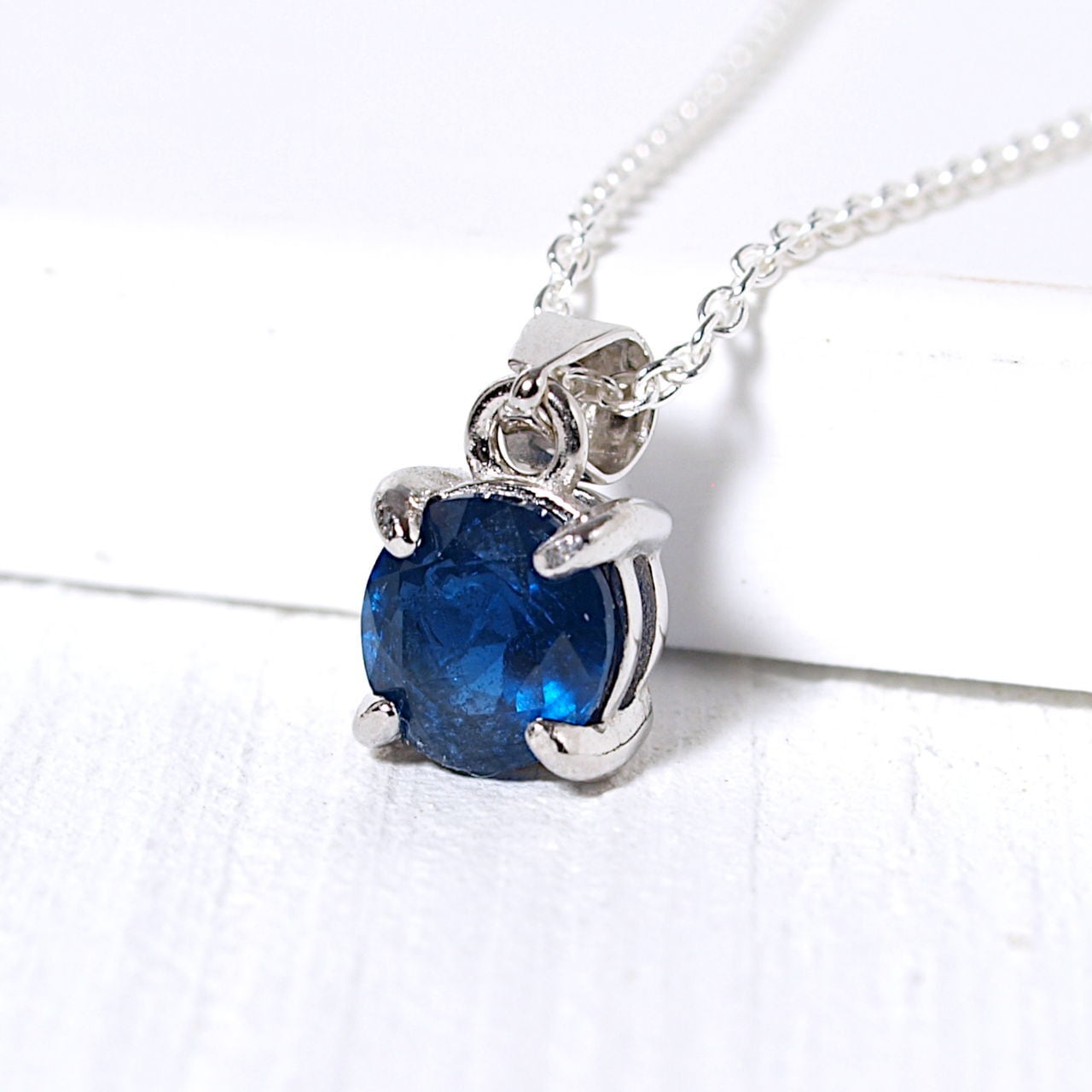 【限定】インディゴブルーカイヤナイトsilver925爪留めネックレス