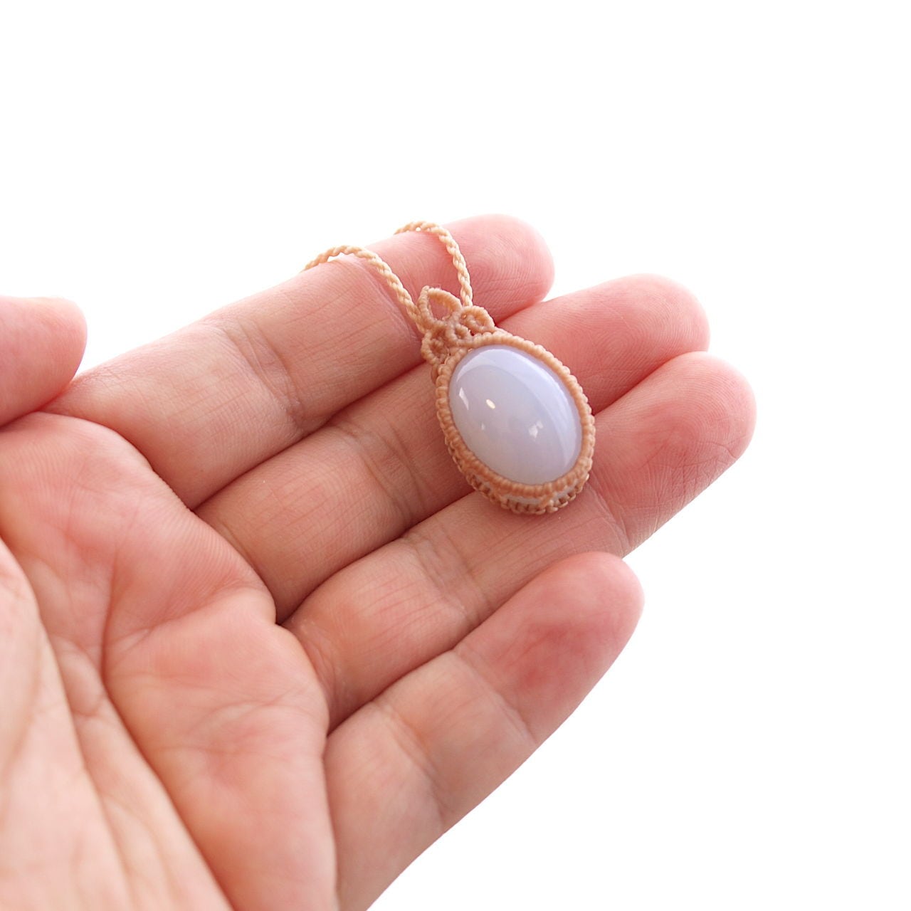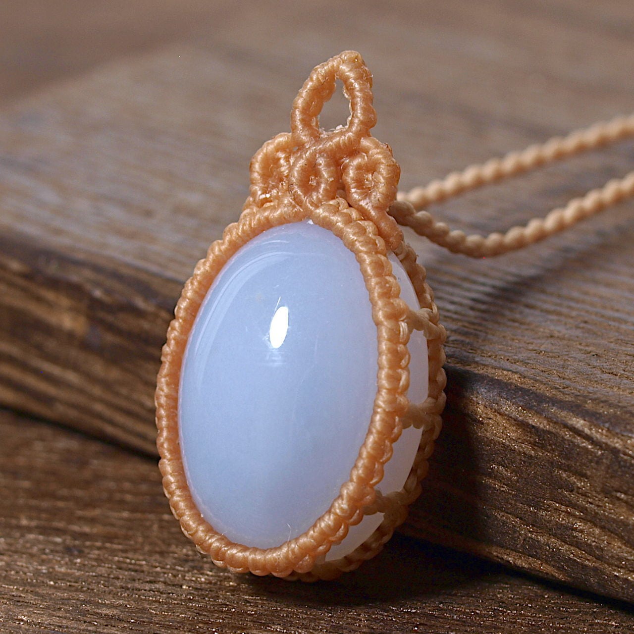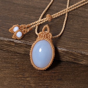 【一点物】ブルーカルセドニーのオーバルルースを包んだマクラメネックレス