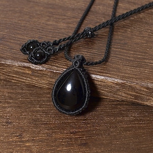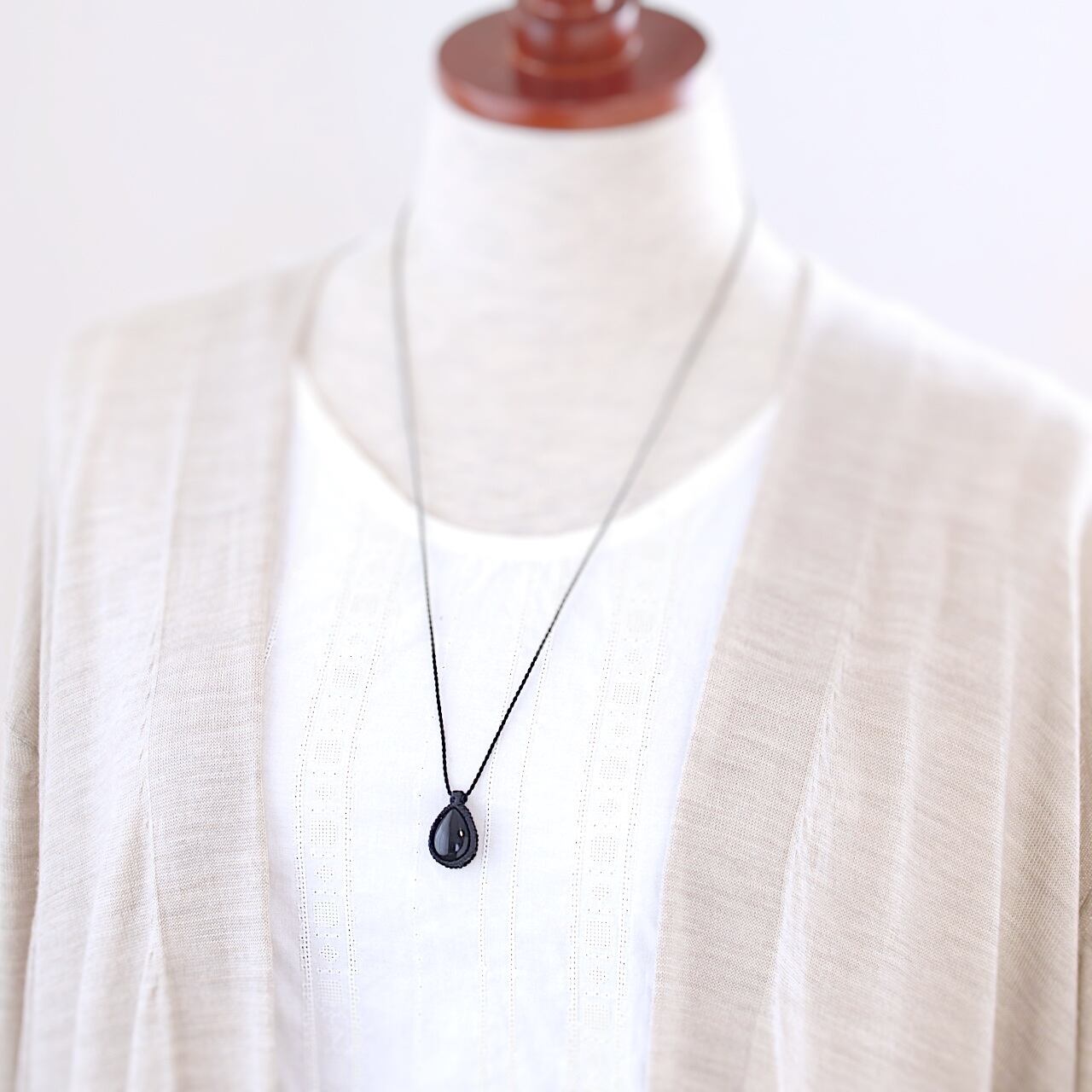 【一点物】モリオンのドロップルースを包んだマクラメネックレスNo.1