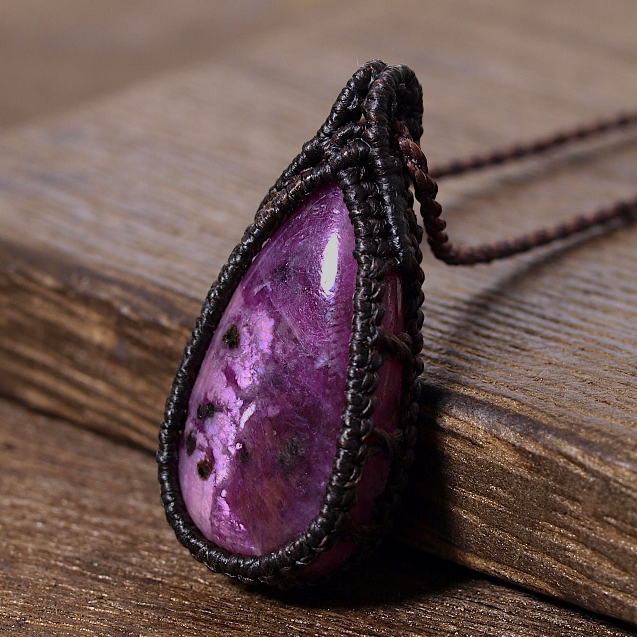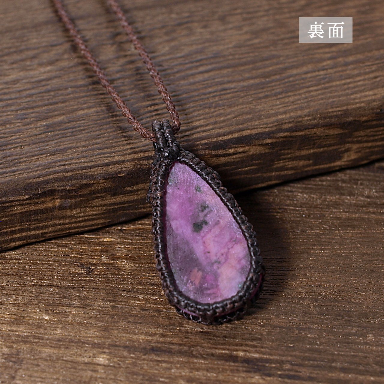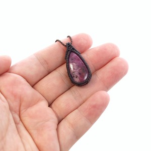 【一点物】ルビーのドロップルースを包んだマクラメネックレス
