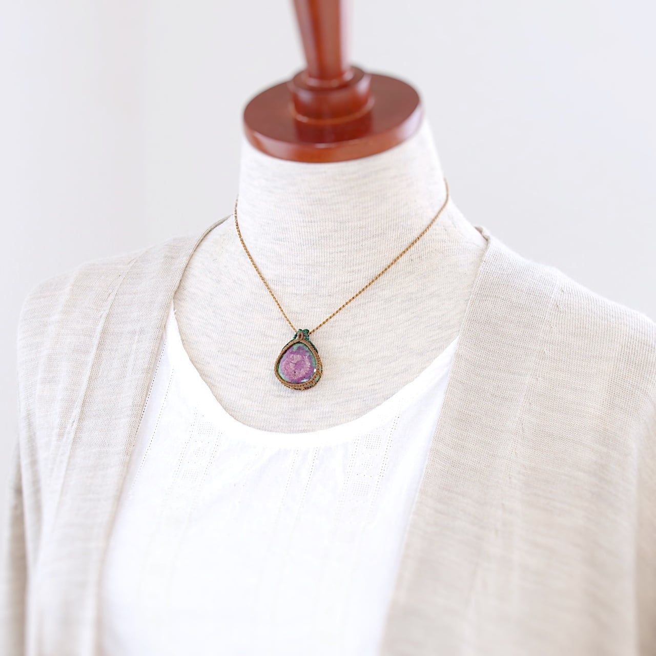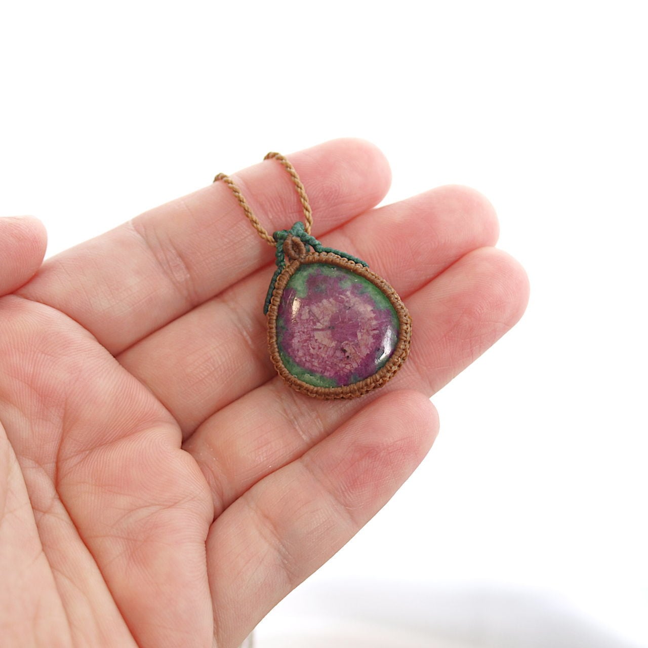 【一点物】ルビーインゾイサイトのドロップルースを包んだマクラメネックレス