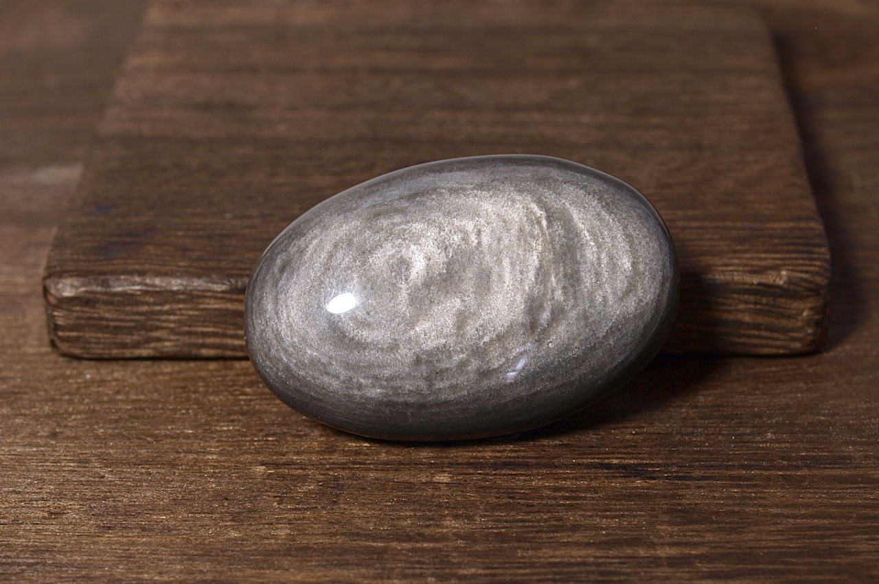 シルバーに輝くオブシディアンは、心を落ち着かせ、穏やかな気分にリセットしてくれるヒーリングアイテムです。ストレスや怒りを鎮め、冷静で澄んだ精神状態へと導くことで、直感力や判断力を高めてくれると伝えられています。周囲の意見や情報に惑わされず、物事の本質を見極められるようになるため、仕事運の向上や目標達成に力を貸してくれるでしょう。