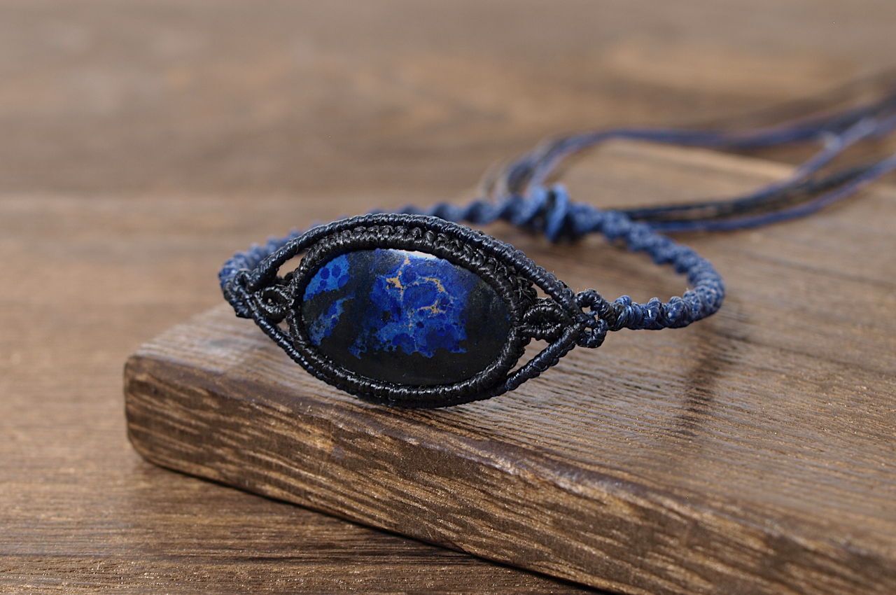 【一点物】アズライトのルースを包んだマクラメブレスレット