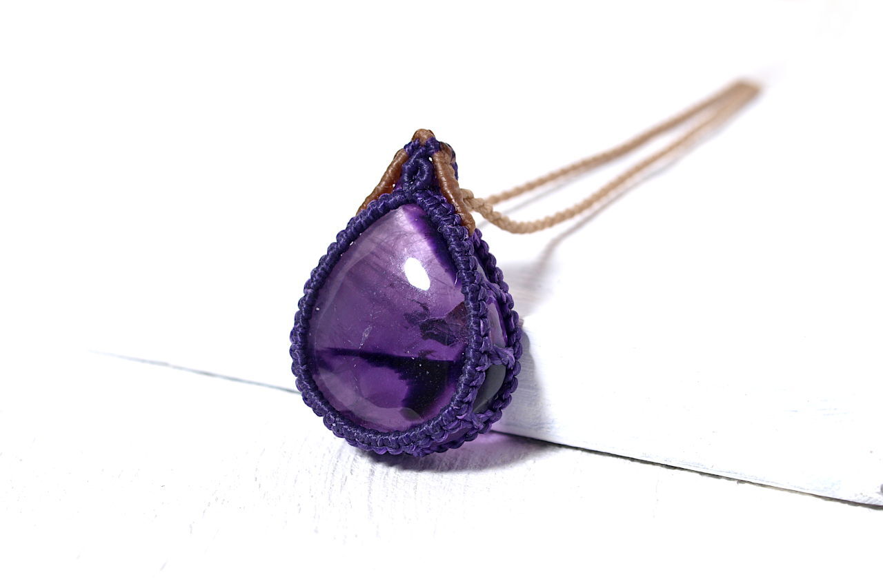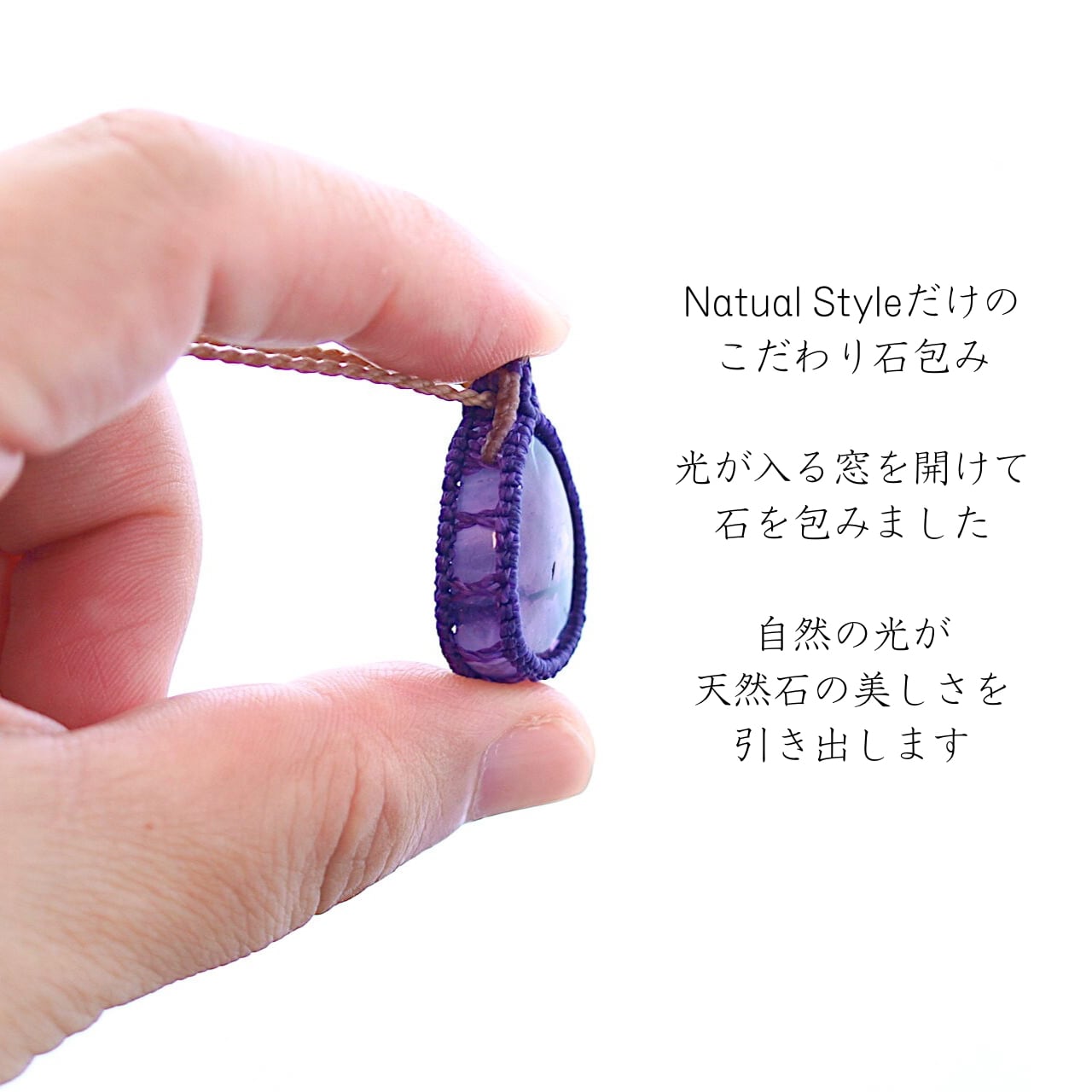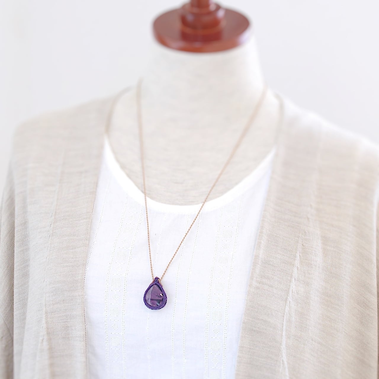 【一点物】トラピッチェアメジストのドロップルースを包んだマクラメネックレスNo.6