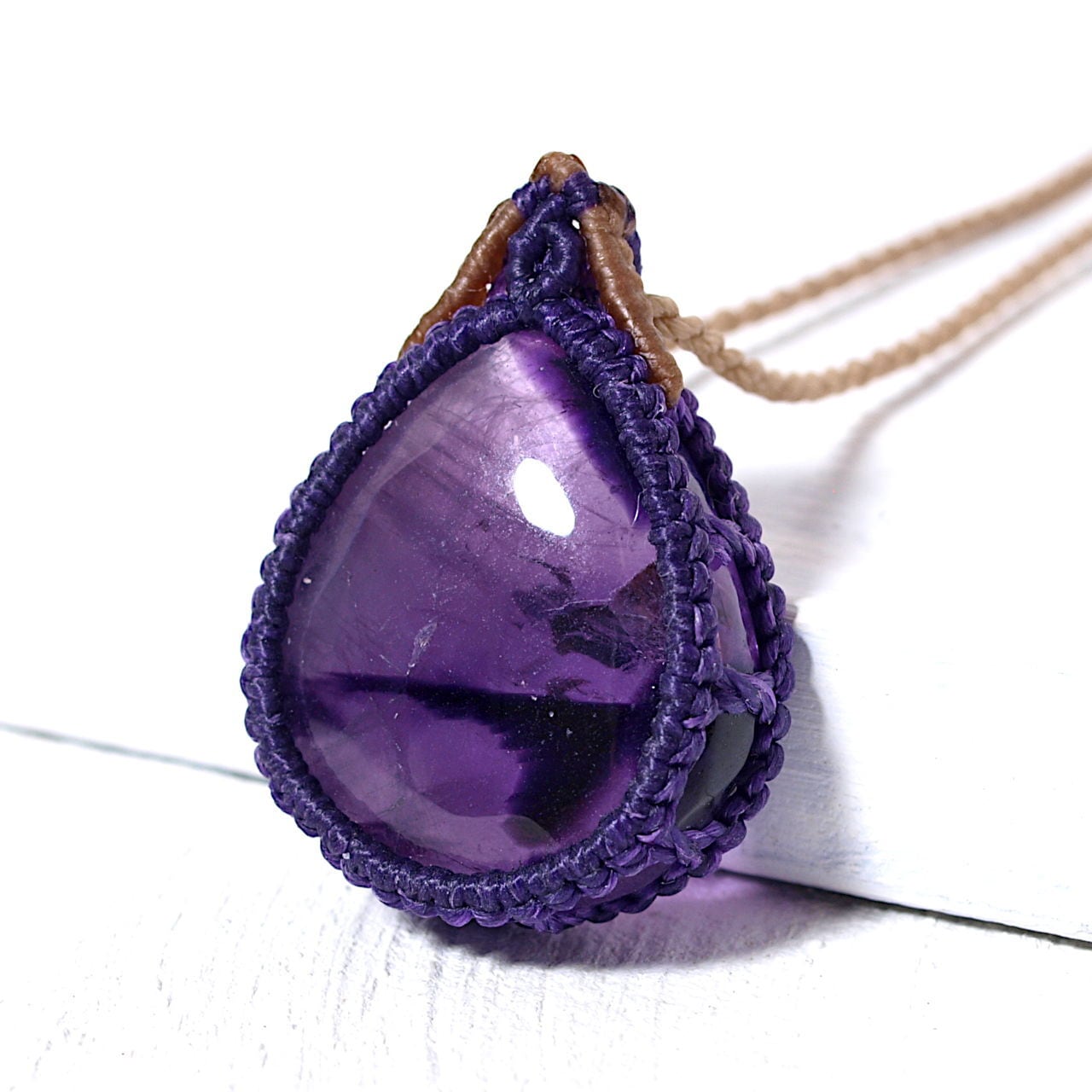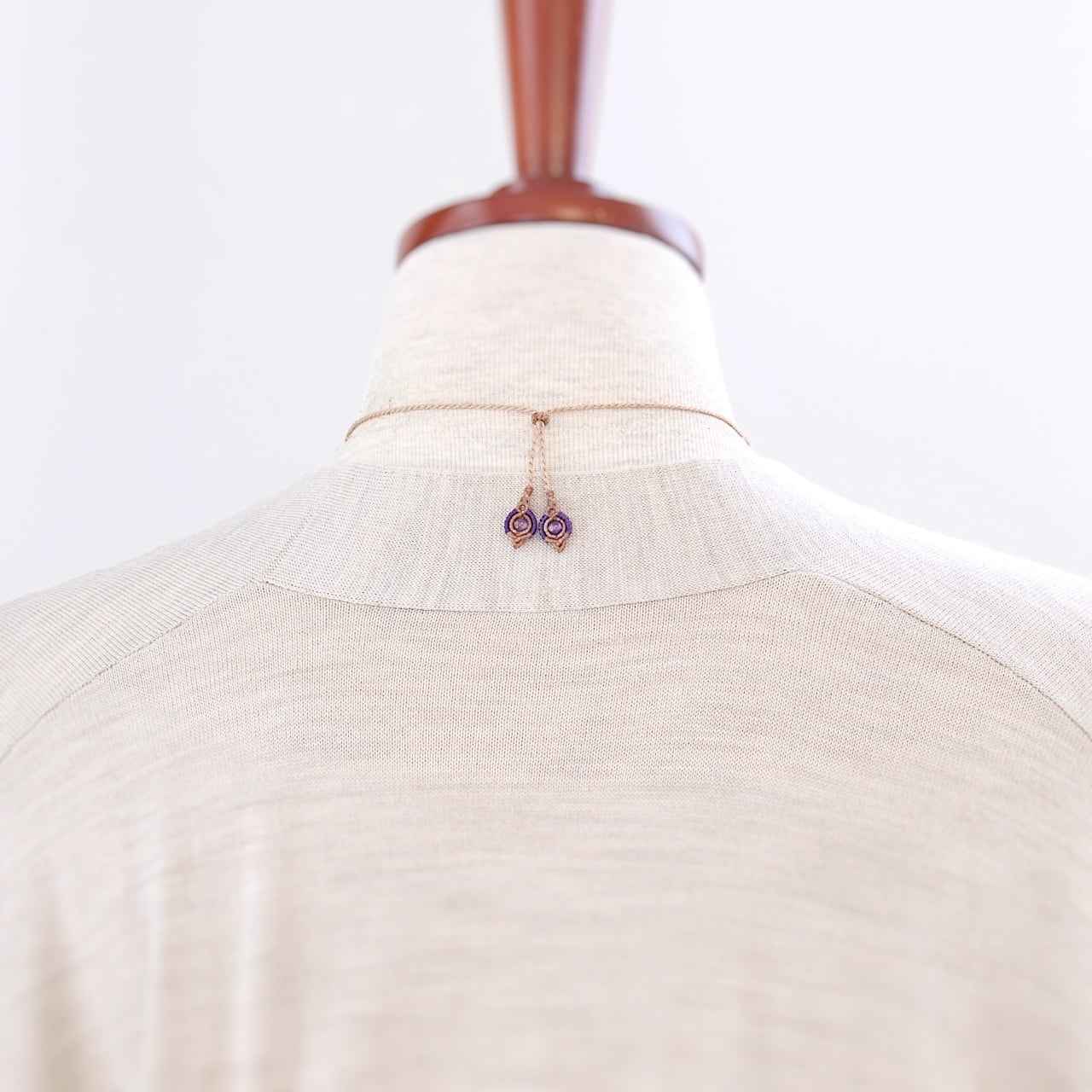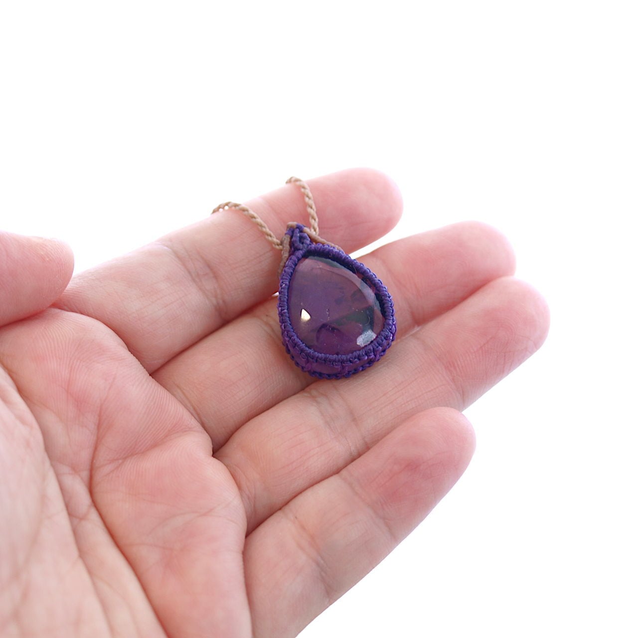 【一点物】トラピッチェアメジストのドロップルースを包んだマクラメネックレスNo.6