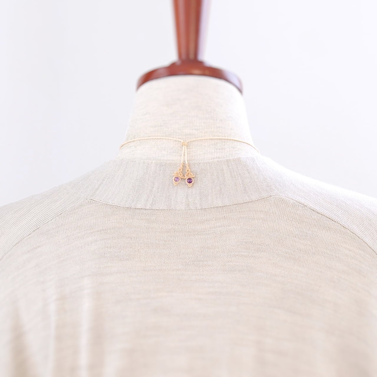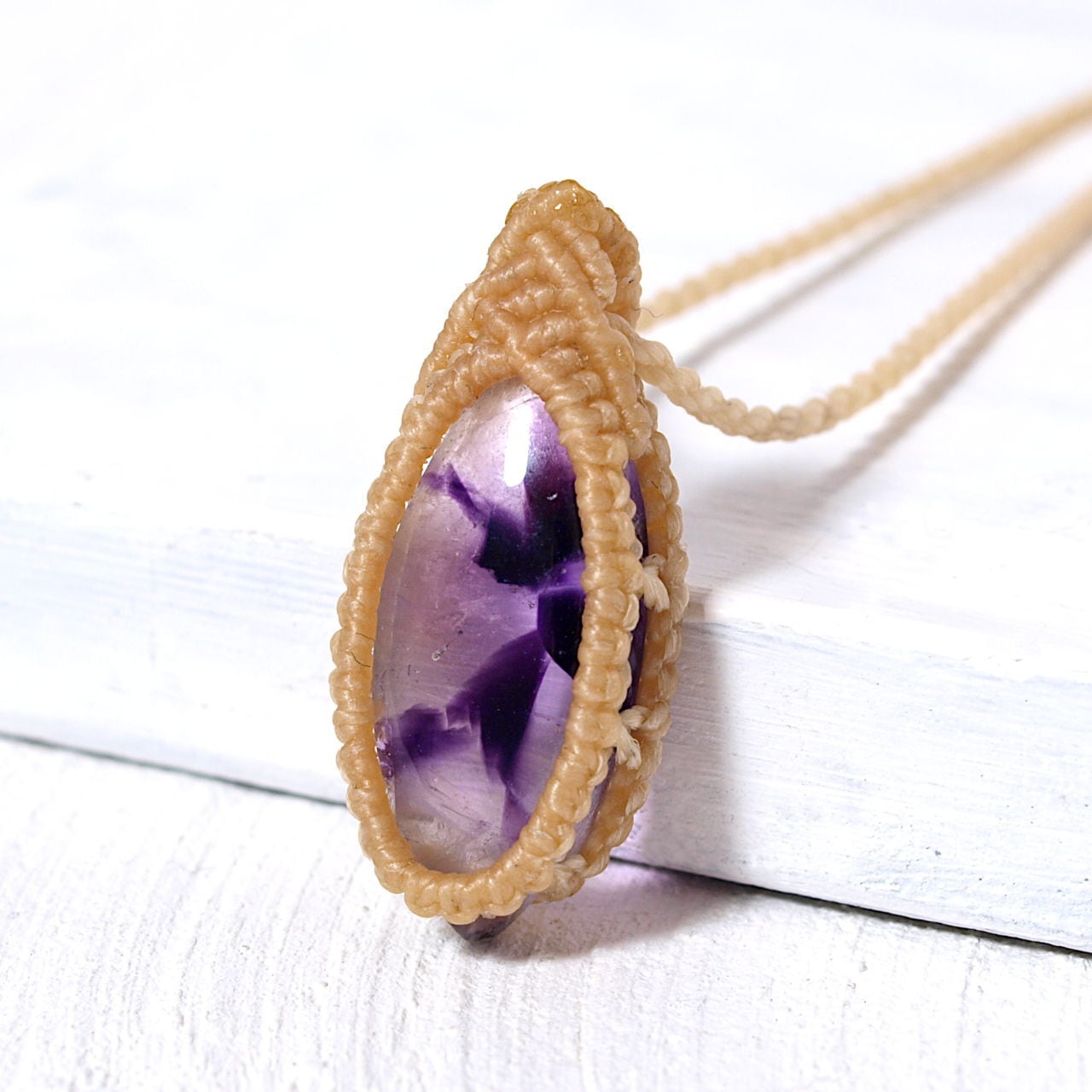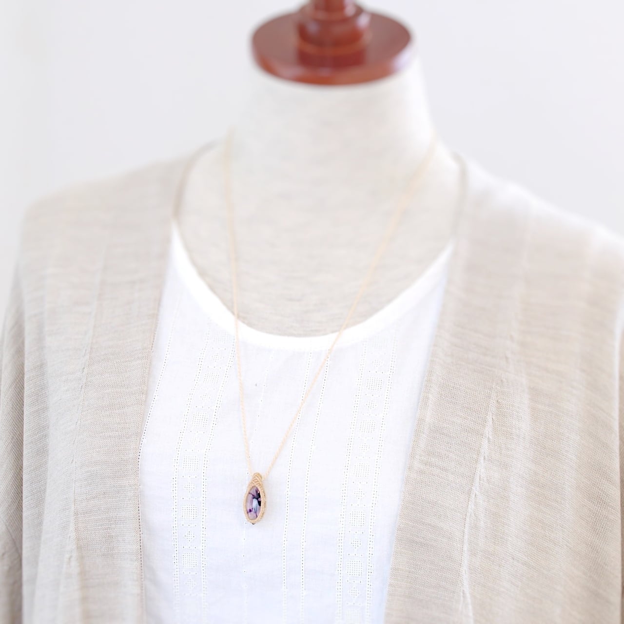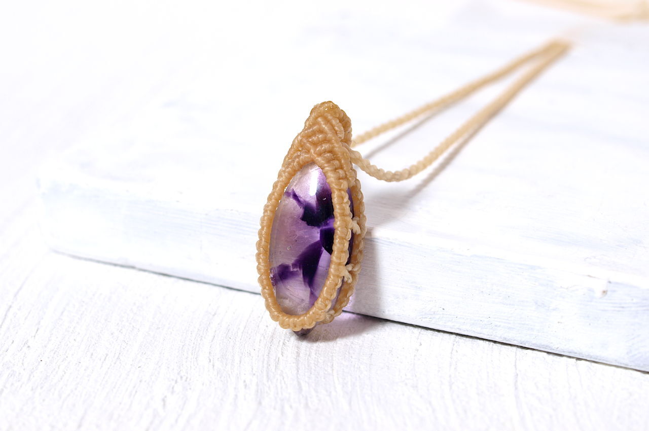 【一点物】トラピッチェアメジストのマーキスルースを包んだマクラメネックレスNo.4