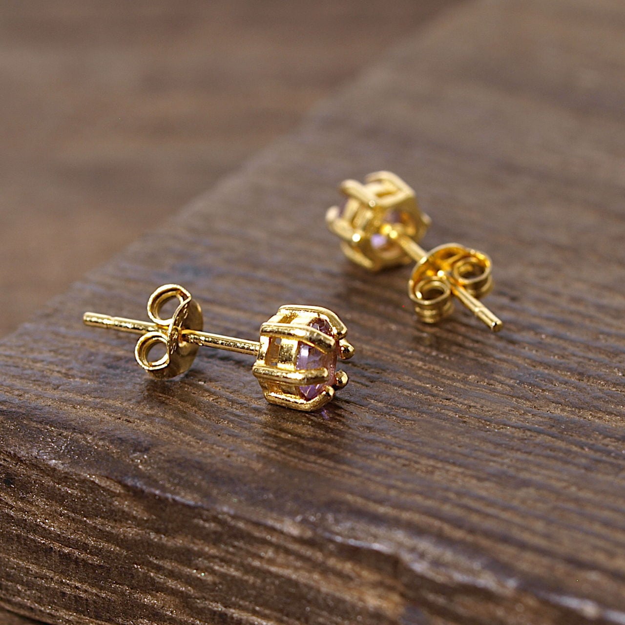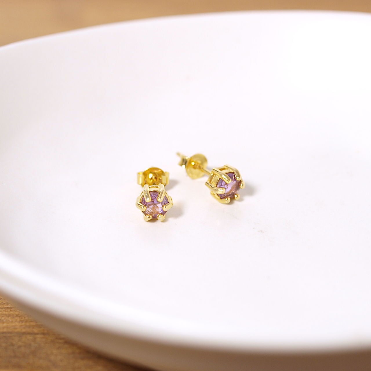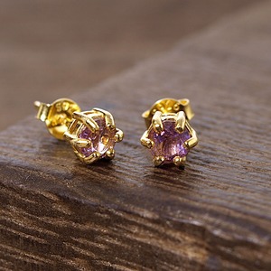 【限定】ライトカラーアメジスト爪留めスタッドピアス(K18GP)
