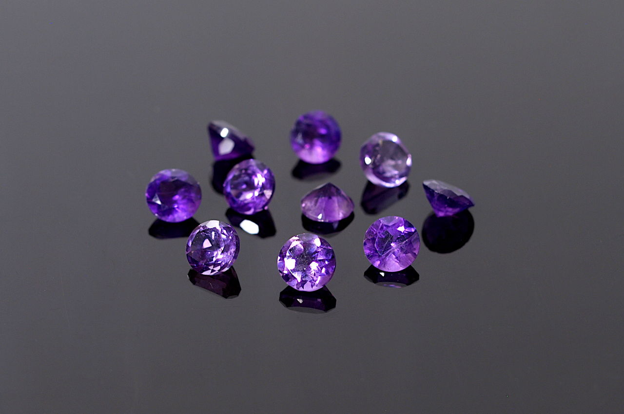 アメジストは2月の誕生石。和名「紫水晶」と呼ばれる通り、美しい紫色の水晶です。上品で優しい雰囲気が広く愛され、その昔、位の高い僧侶、皇族など高貴な人々が好んでアメジストを身に着けたそうです。ひとくちに「紫色」といってもその濃さや色あいは幅広く、黒っぽく見えるほど濃い紫色から、淡く薄い透明感のある紫色まで様々です。さらに青みがかった紫、ピンクがかった紫、透明感のないミルキーな紫など、色あいも多岐にわたっています。