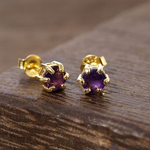 【限定】アメジスト爪留めスタッドピアス(K18GP)