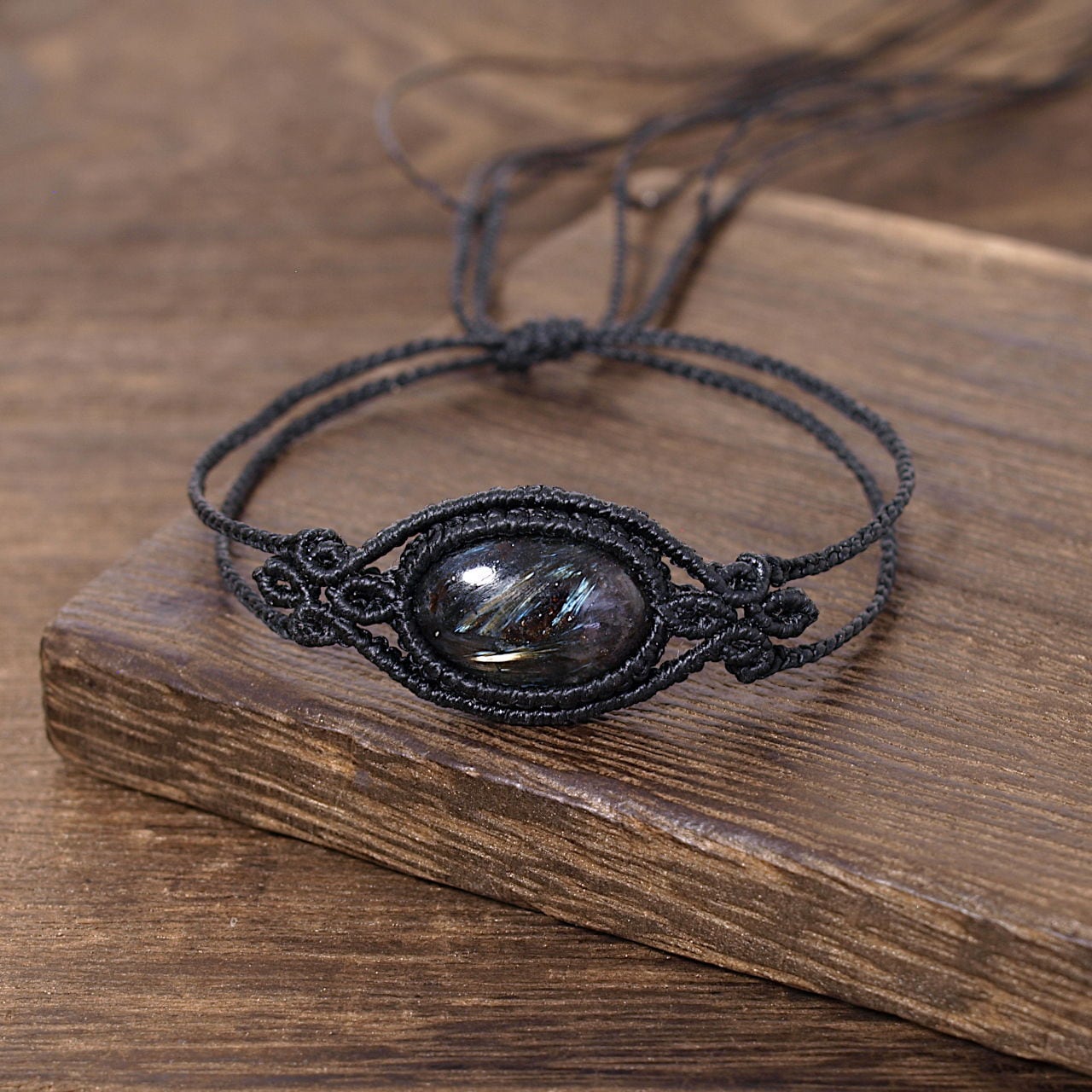【一点物】ヌーマイトのオーバルルースを包んだマクラメブレスレット