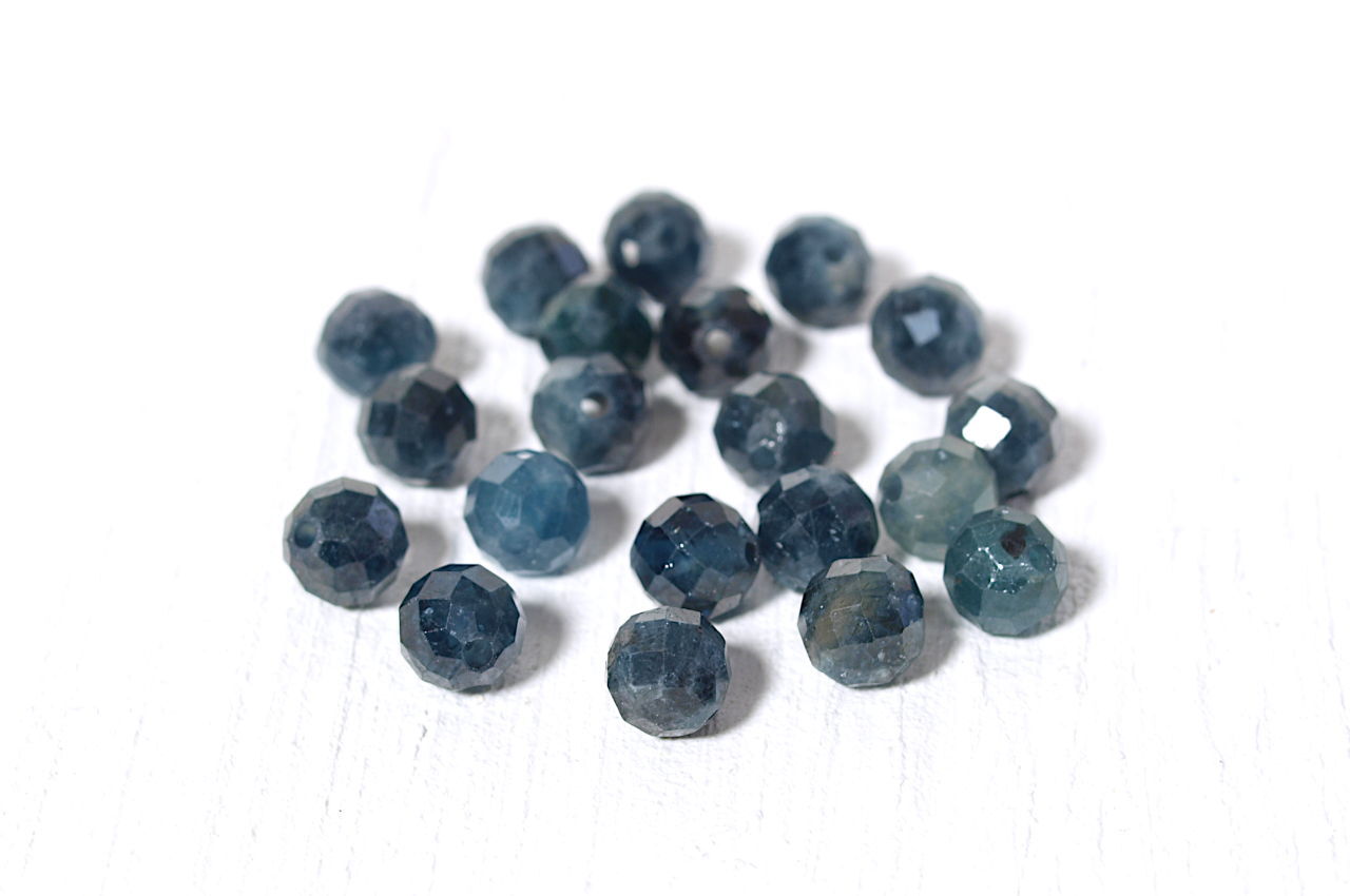 グレードAA++。透明度が低い粒もありますが、落ち着いた雰囲気で、深く濃いインディゴブルーの色あいが綺麗です、石の表面にカットが施されたラウンドカットです。