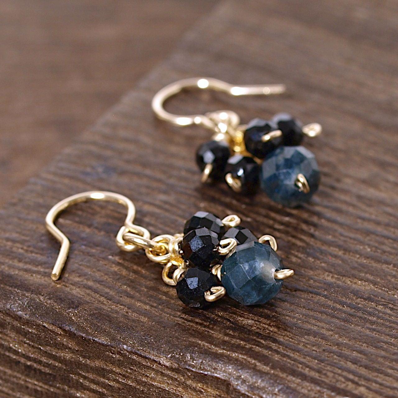 【限定】インディゴブルートルマリン+ブラックスピネルK14GFピアス・イヤリング