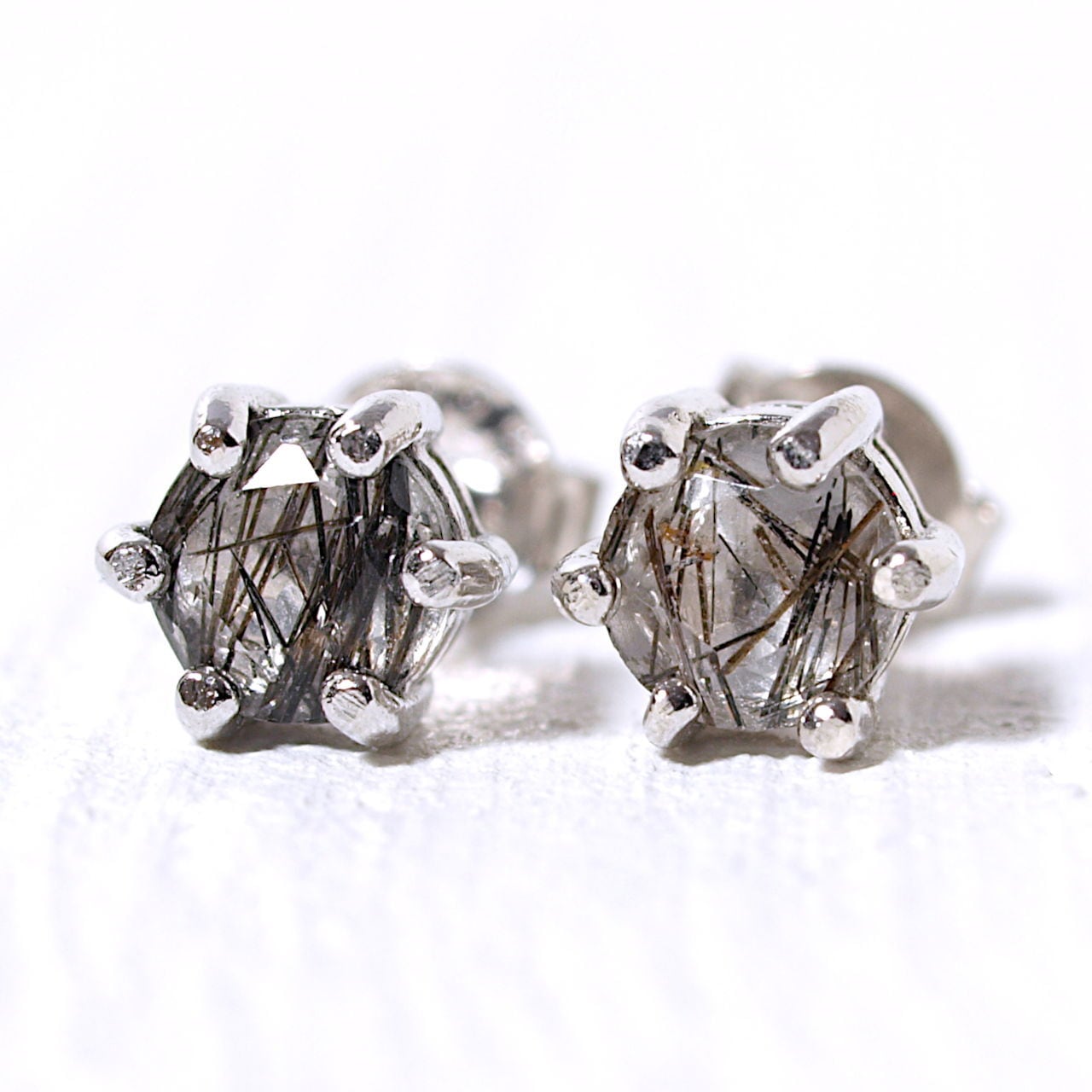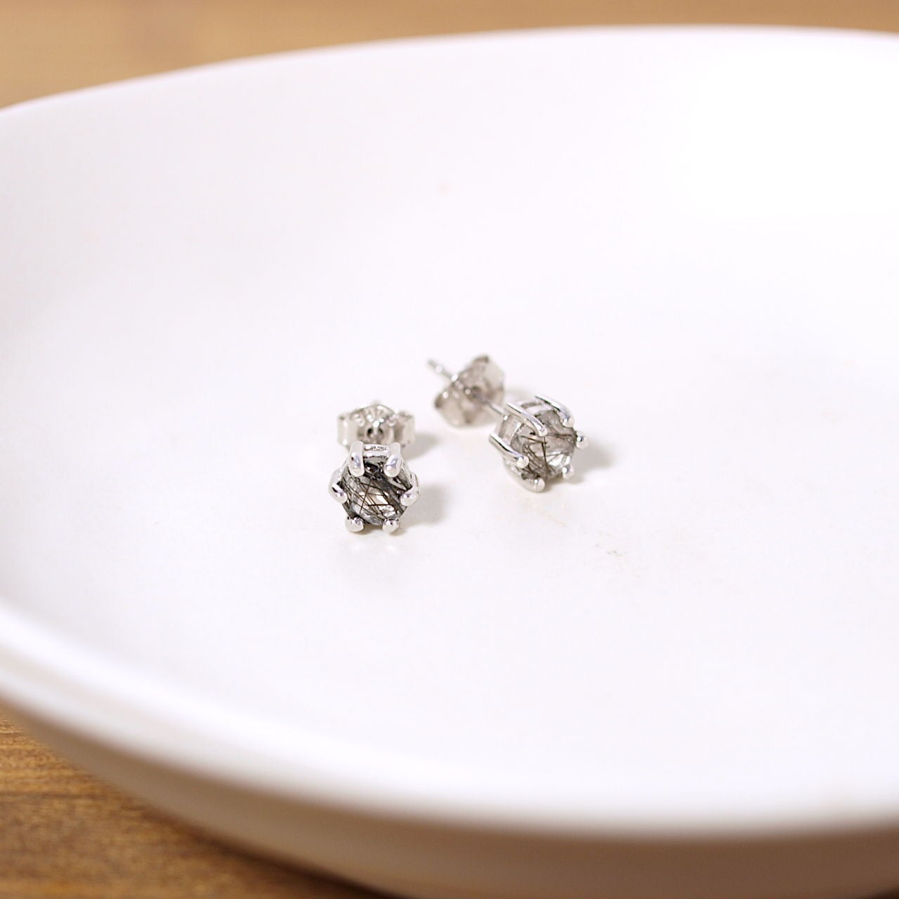 【限定】ブラックトルマリン入り水晶爪留めスタッドピアス(silver925)