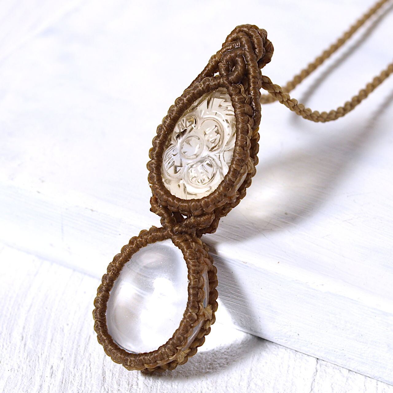 【一点物】シトリン花カービング+水晶連結マクラメネックレス