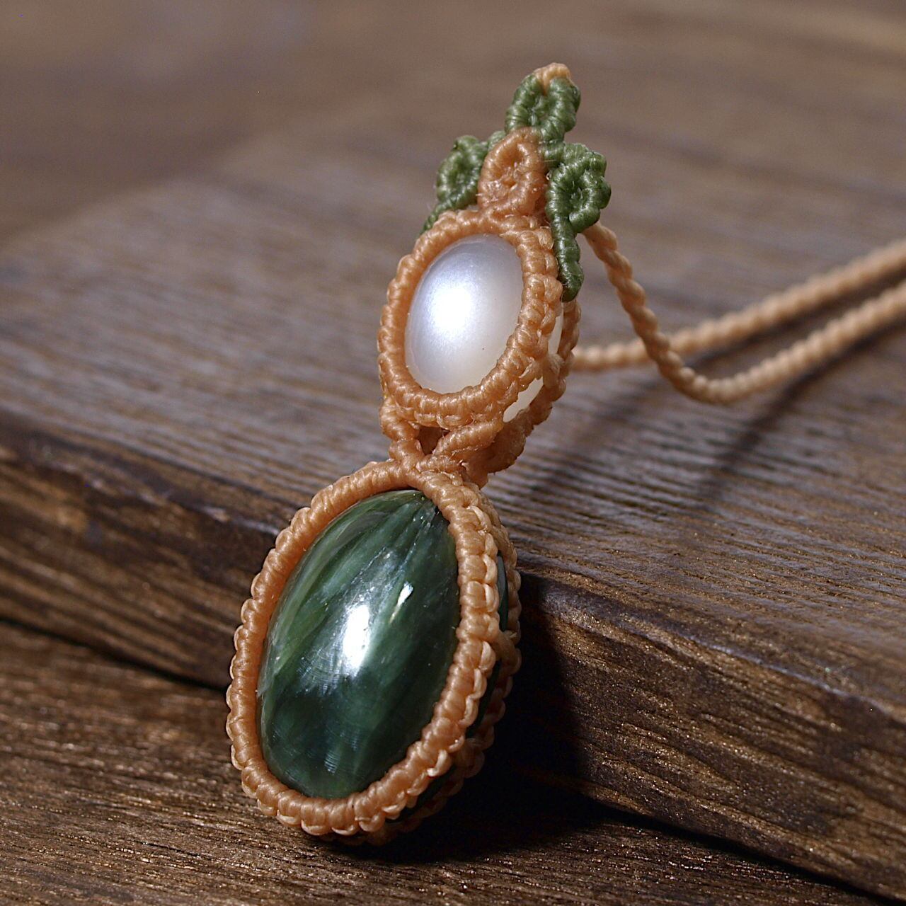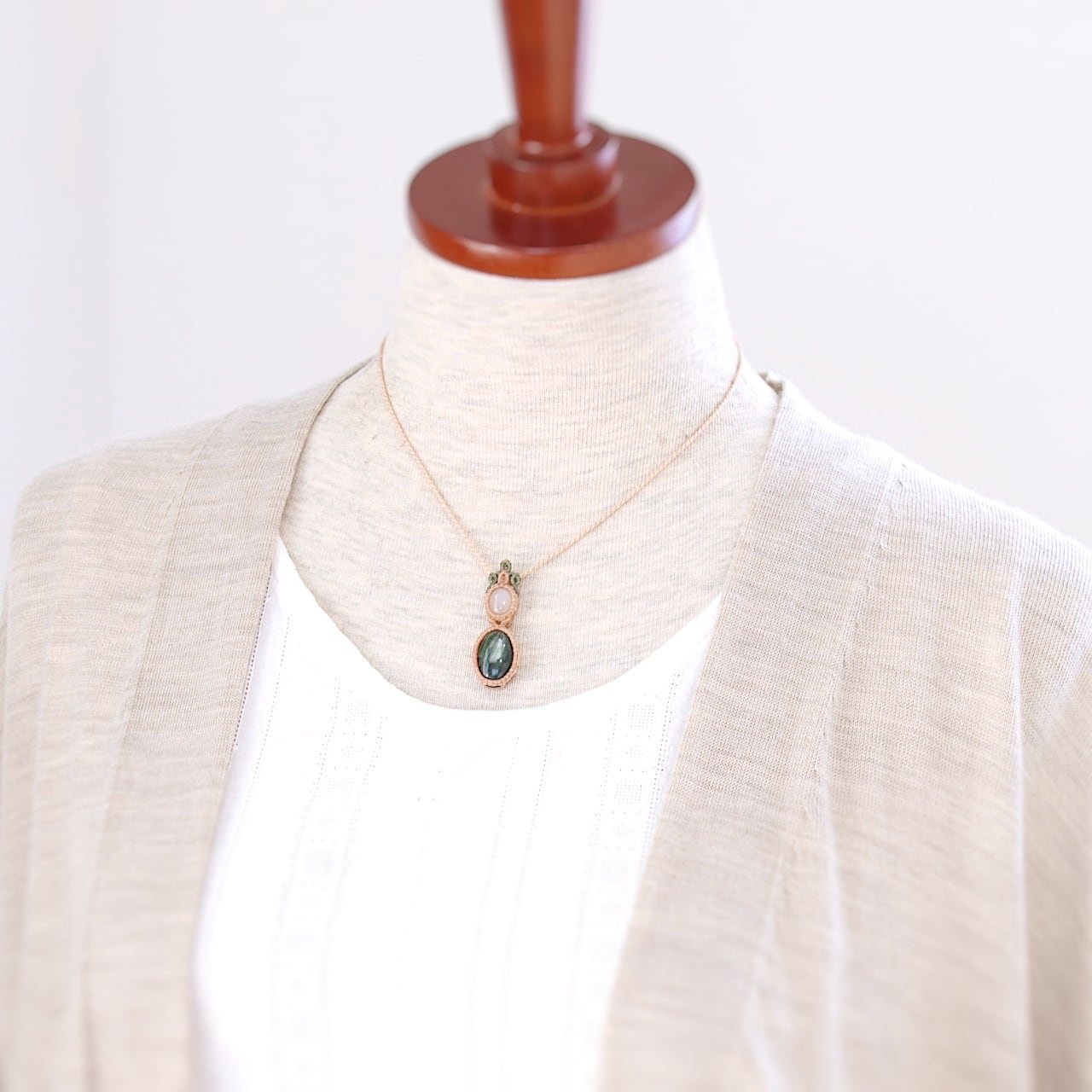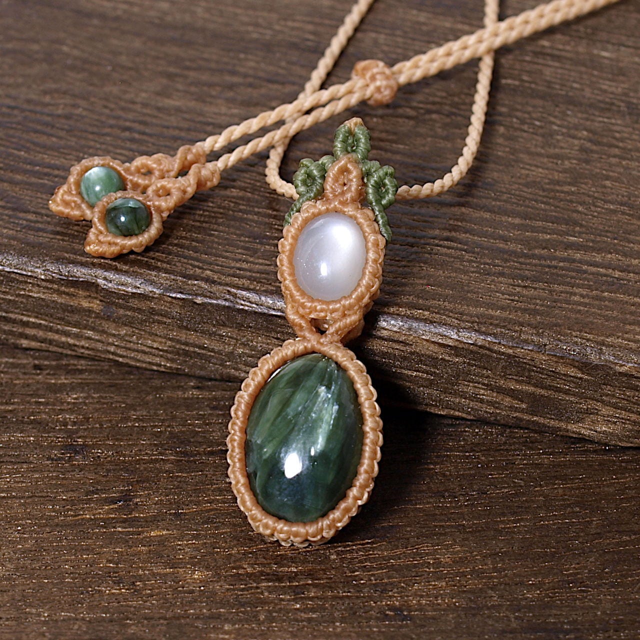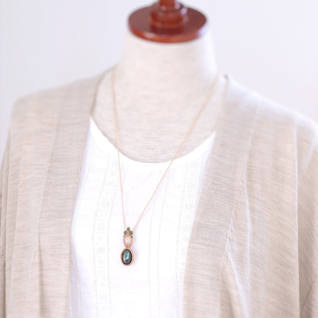 【一点物】ムーンストーン+セラフィナイト連結マクラメネックレス