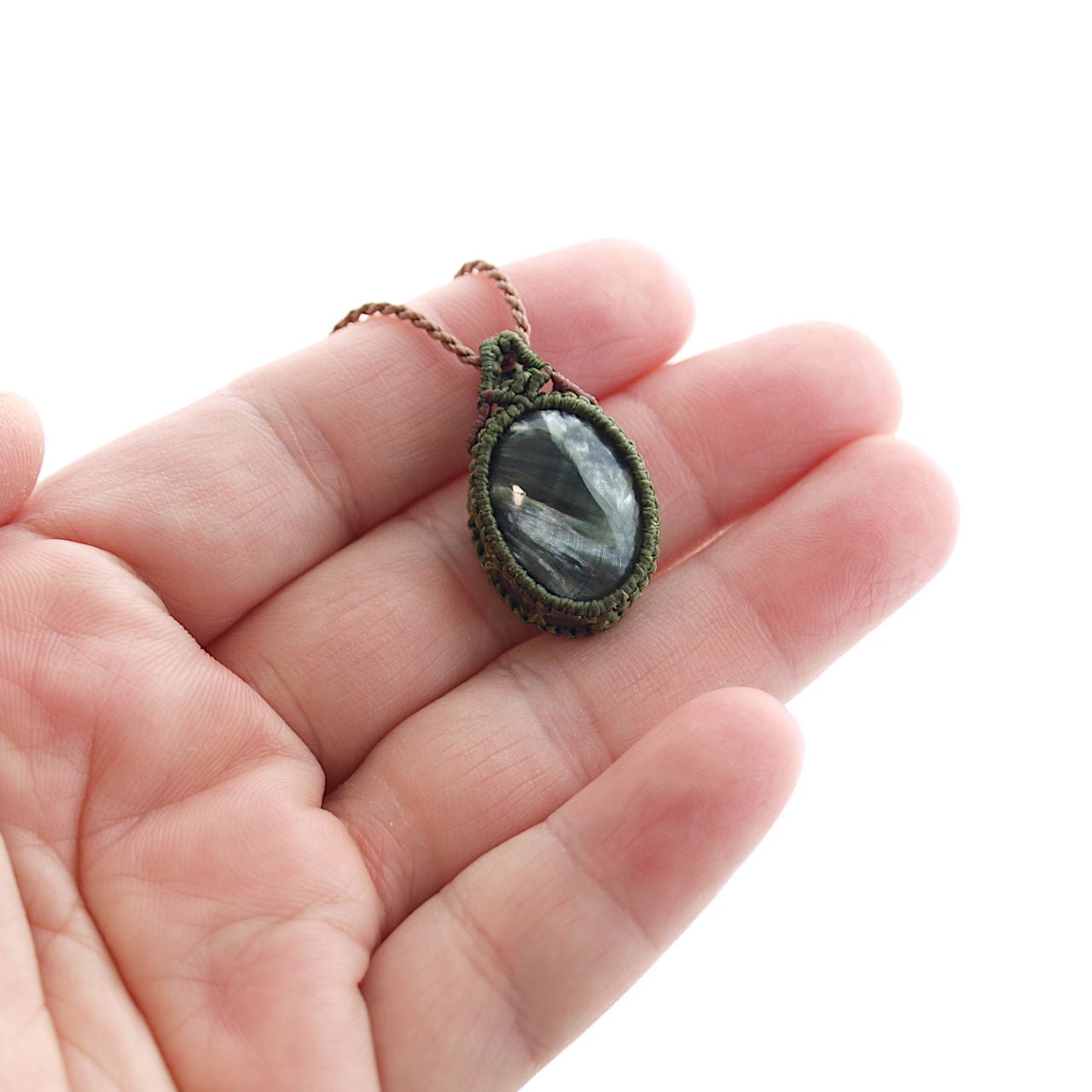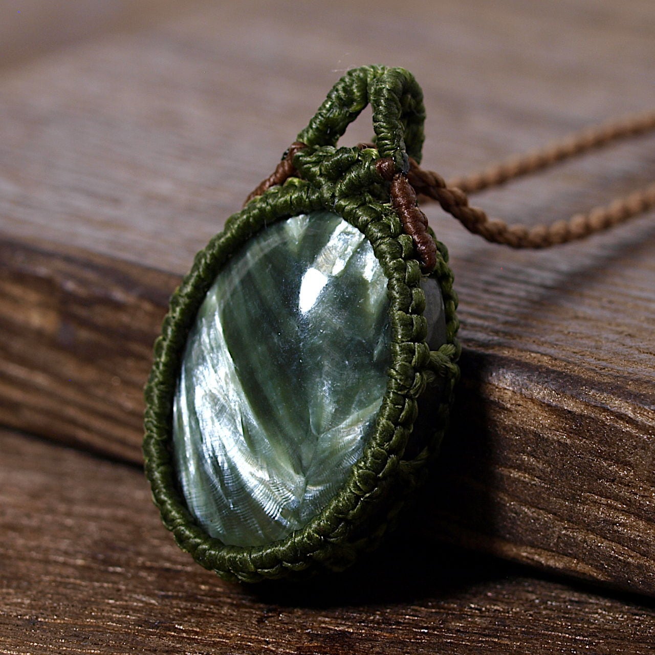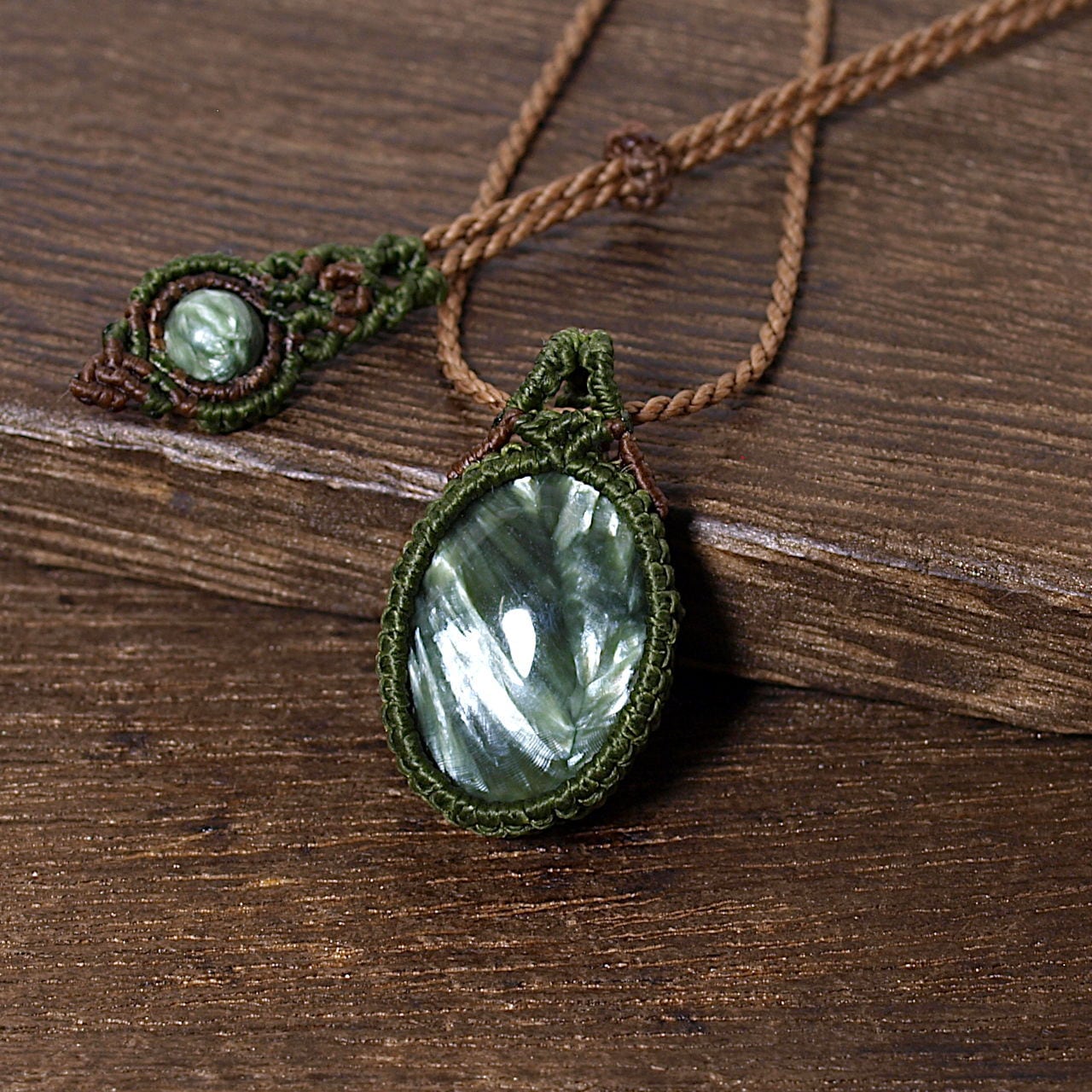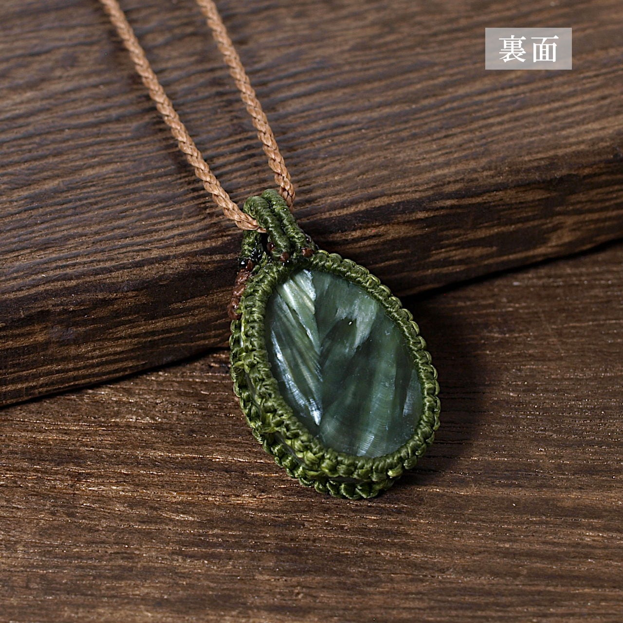 【一点物】セラフィナイトのルースを包んだマクラメネックレスNo.6