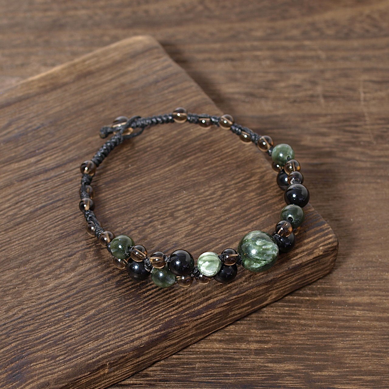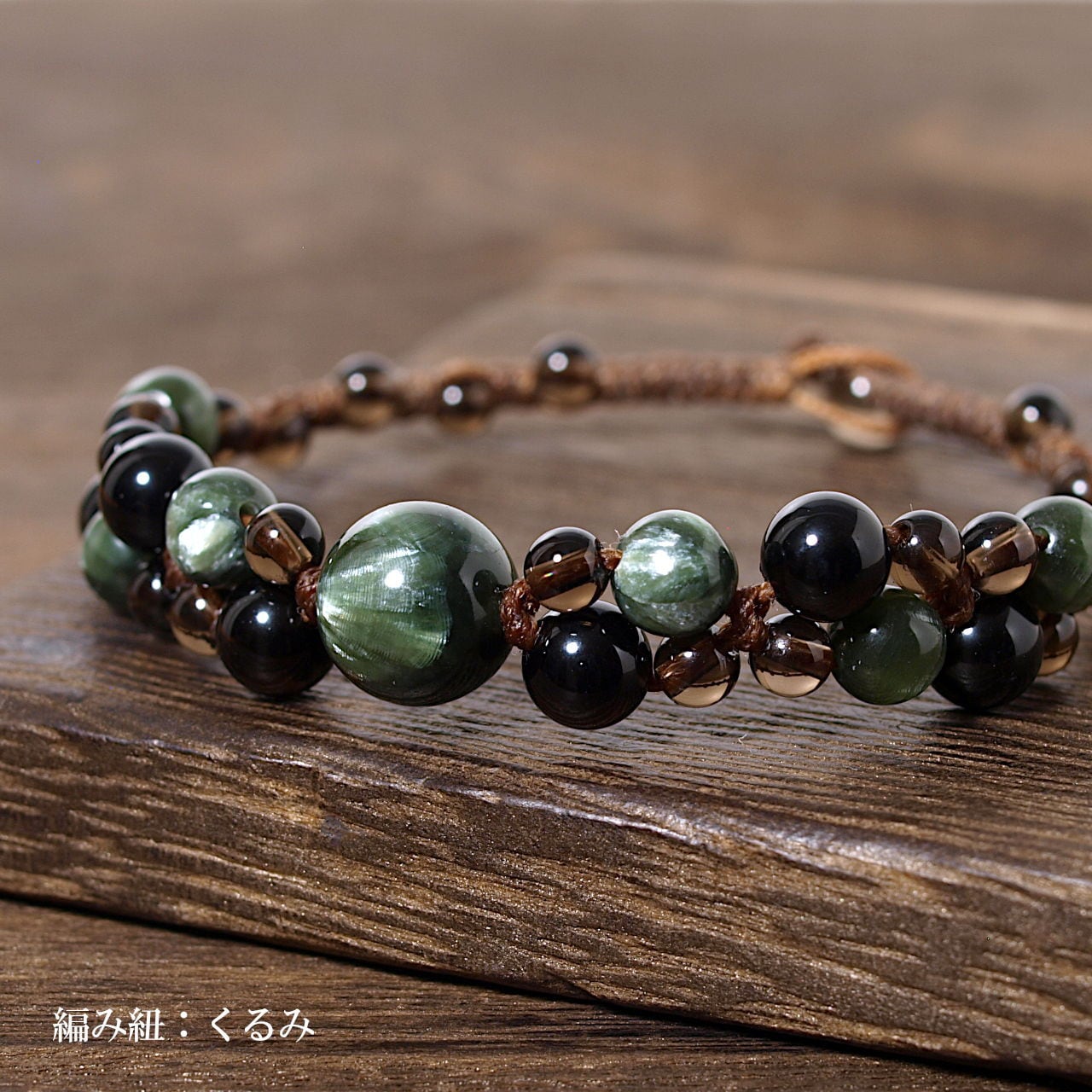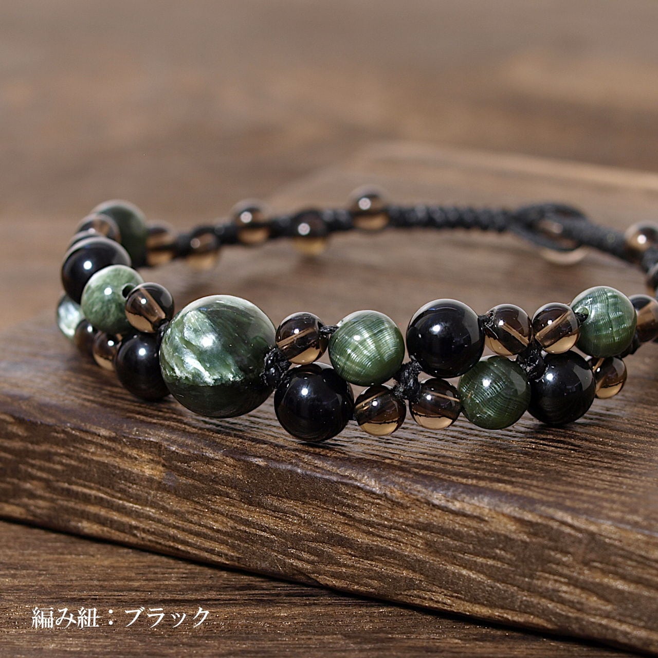 【限定】セラフィナイト+モリオン+スモーキークォーツマクラメブレスレット