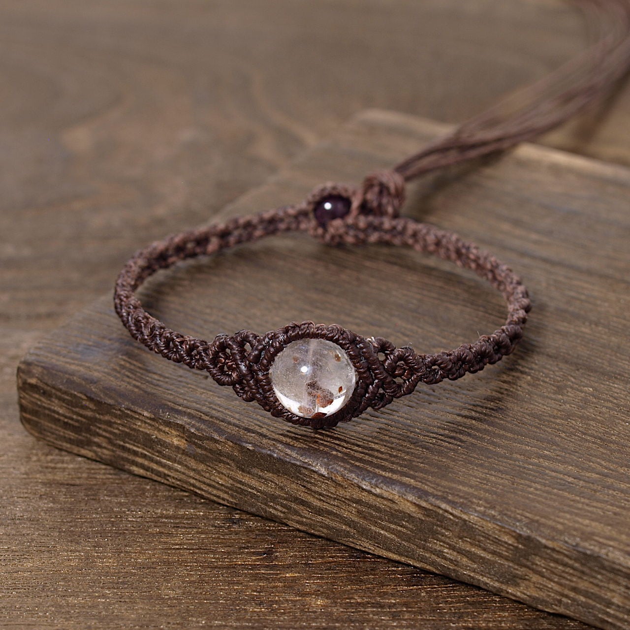 【限定】ガーネットインクォーツ10ミリ玉ひと粒マクラメブレスレット