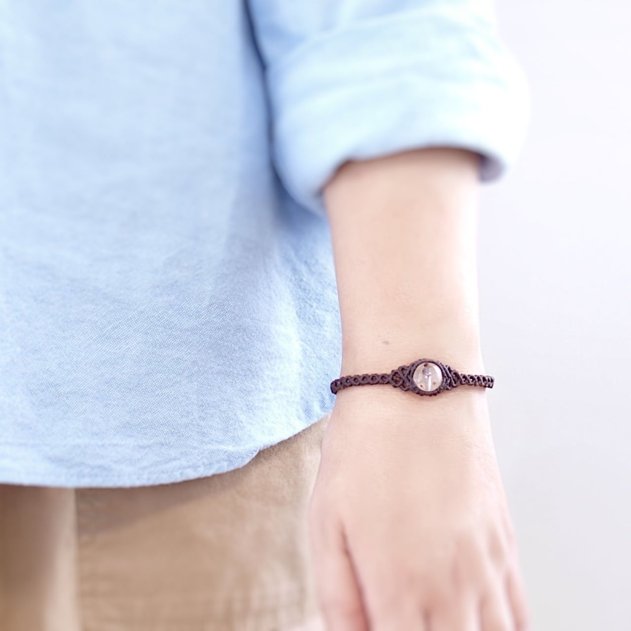 お客様の手首サイズに合わせて、お好きな紐色で制作いたします。編み込む石の数はサイズによって増減しますが、画像の見本品に近い品質をお届けいたします。