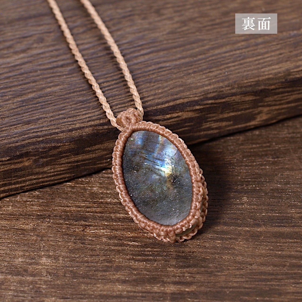 【一点物】ラブラドライトのオーバルルースを包んだマクラメネックレスNo.15