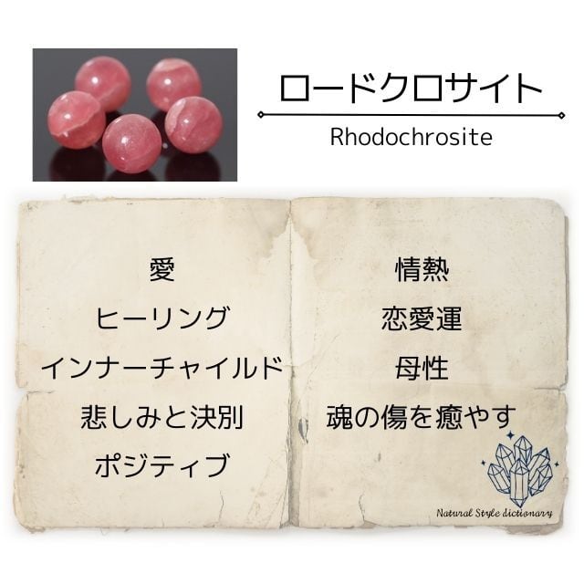 ロードクロサイトの美しいピンク色は全ての愛を体現し、愛に関わる事柄にとても強いエネルギーを放っています。この石の愛は、自らの魂や感情を癒やすこと、人を愛すること、それらがもたらす幸福に向けられています。