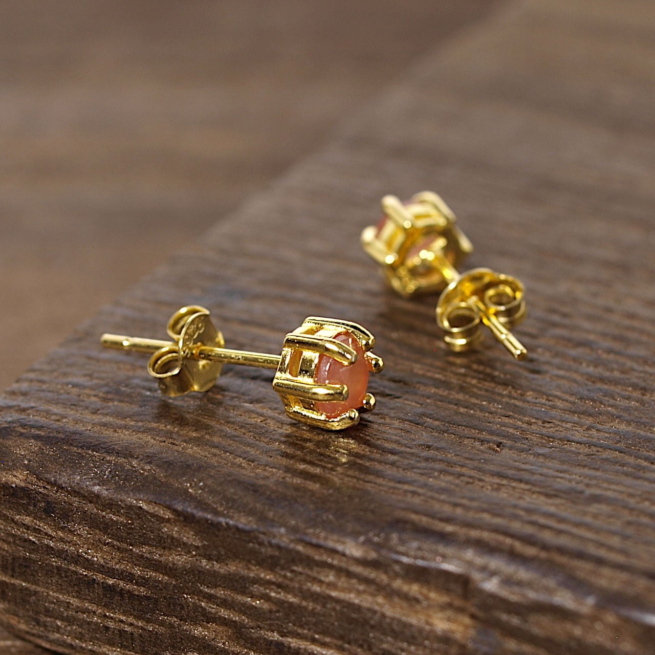 【限定】ペルー産ロードクロサイト爪留めスタッドピアス(K18GP)