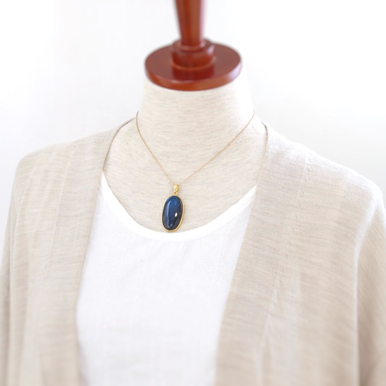 【一点物】ブルーラブラドライトオーバルK18GFペンダントトップN0.2