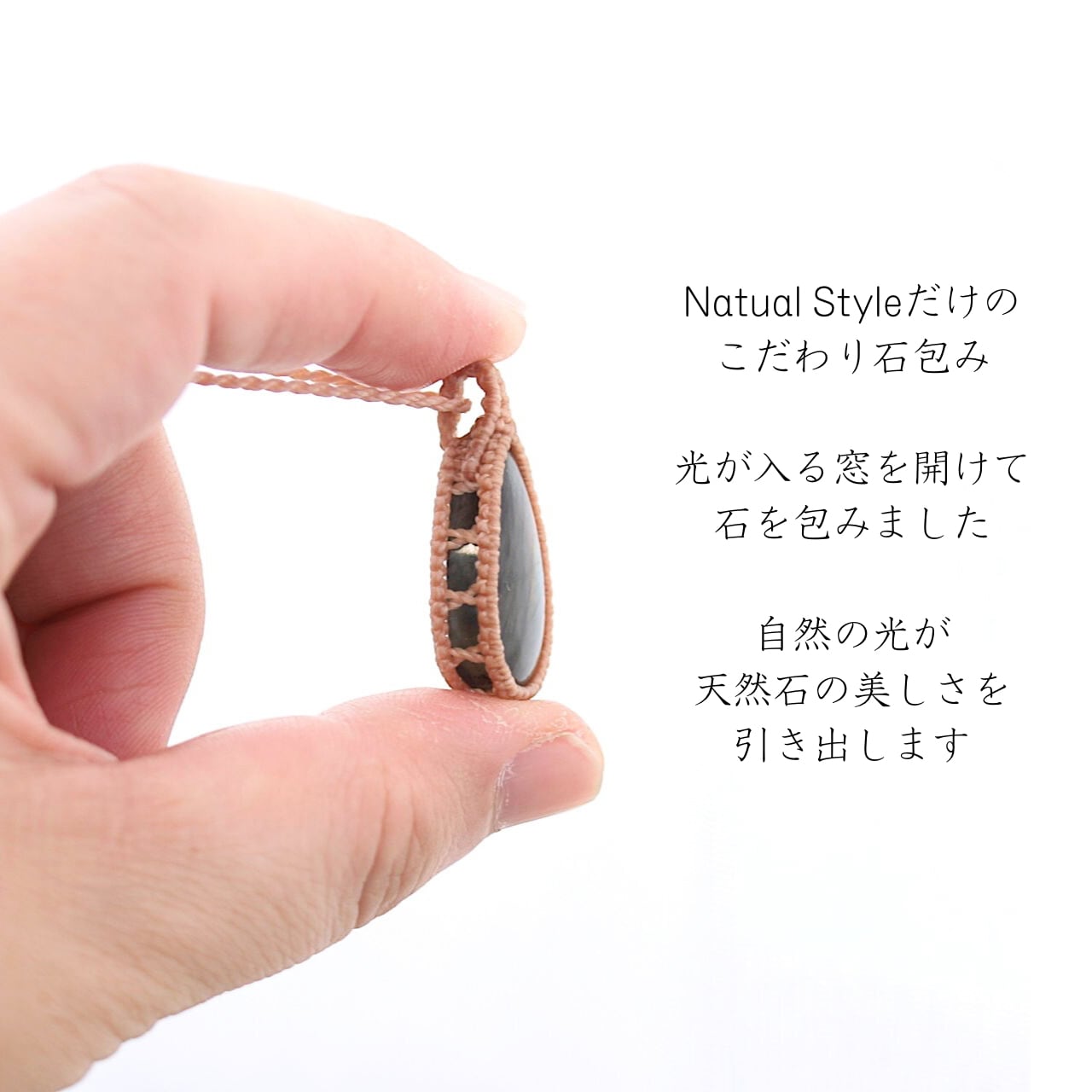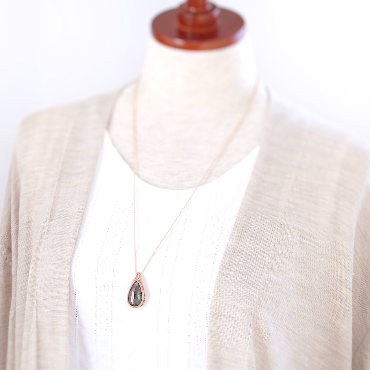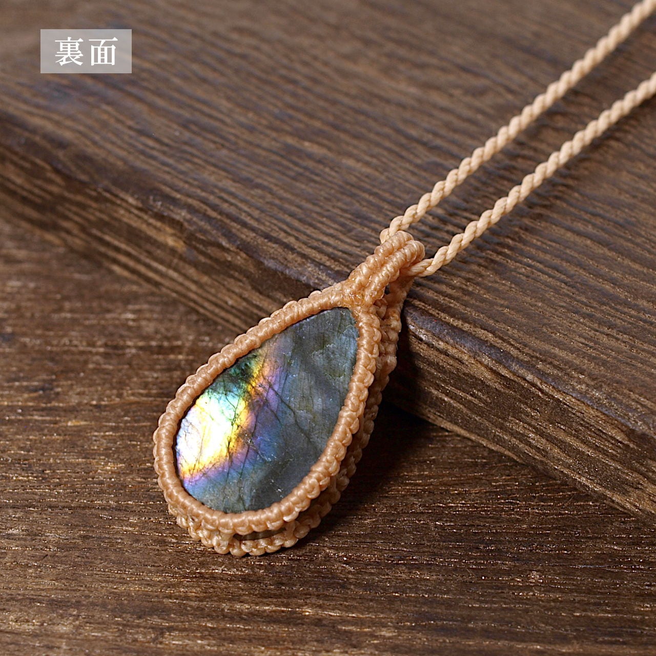 【一点物】ラブラドライトのドロップルースを包んだマクラメネックレスNo.17