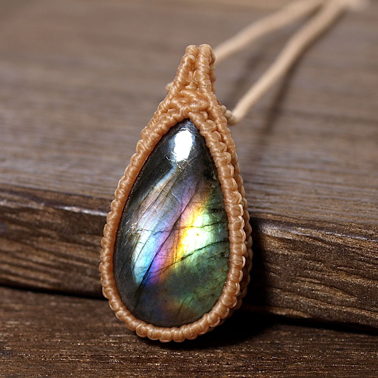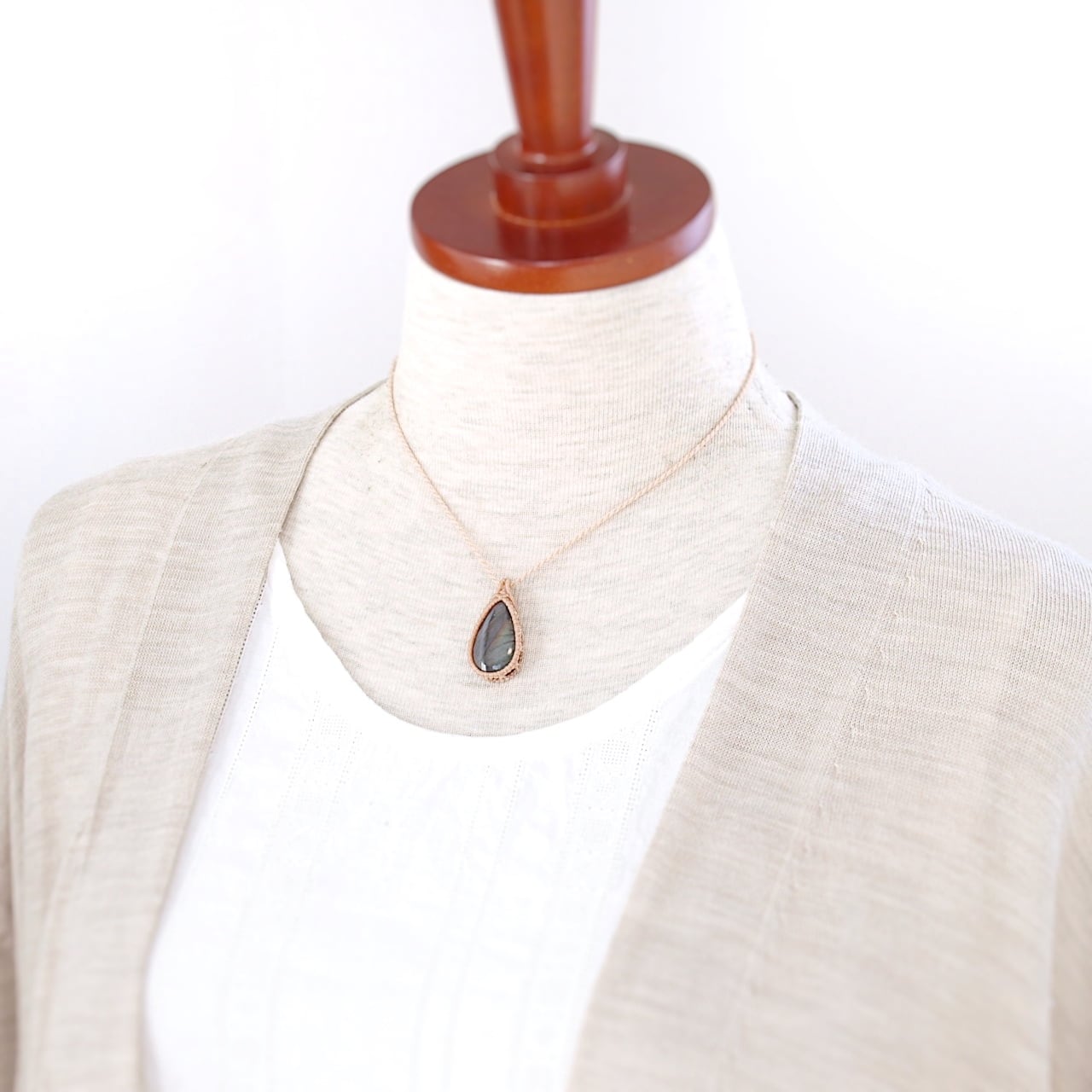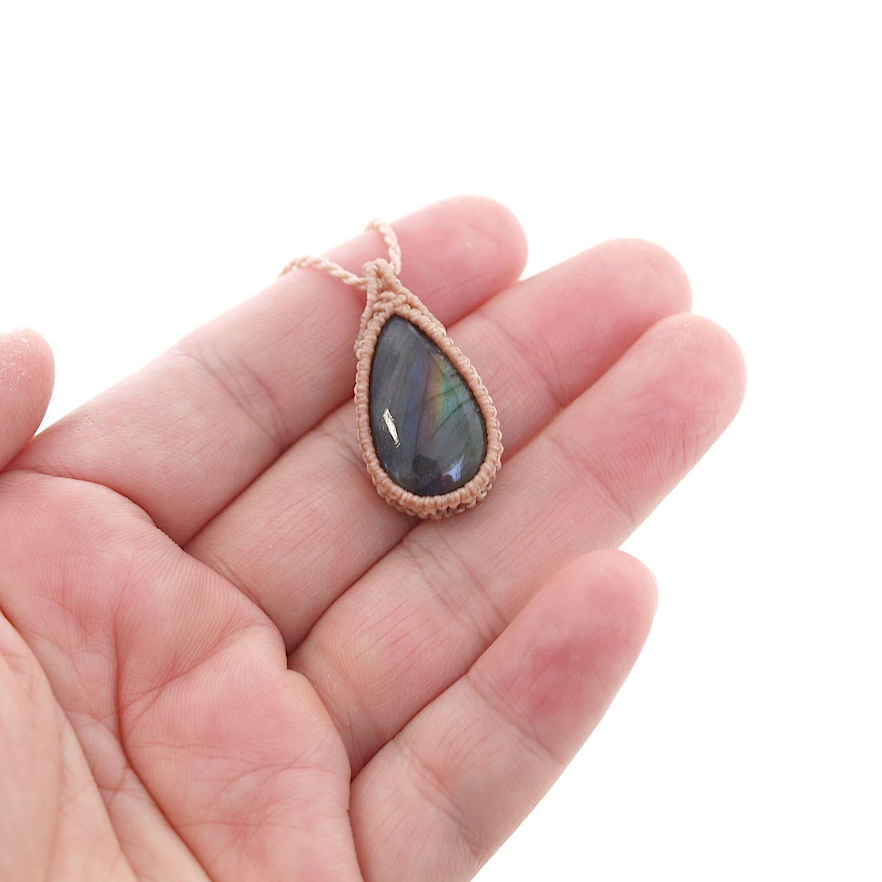 【一点物】ラブラドライトのドロップルースを包んだマクラメネックレスNo.17