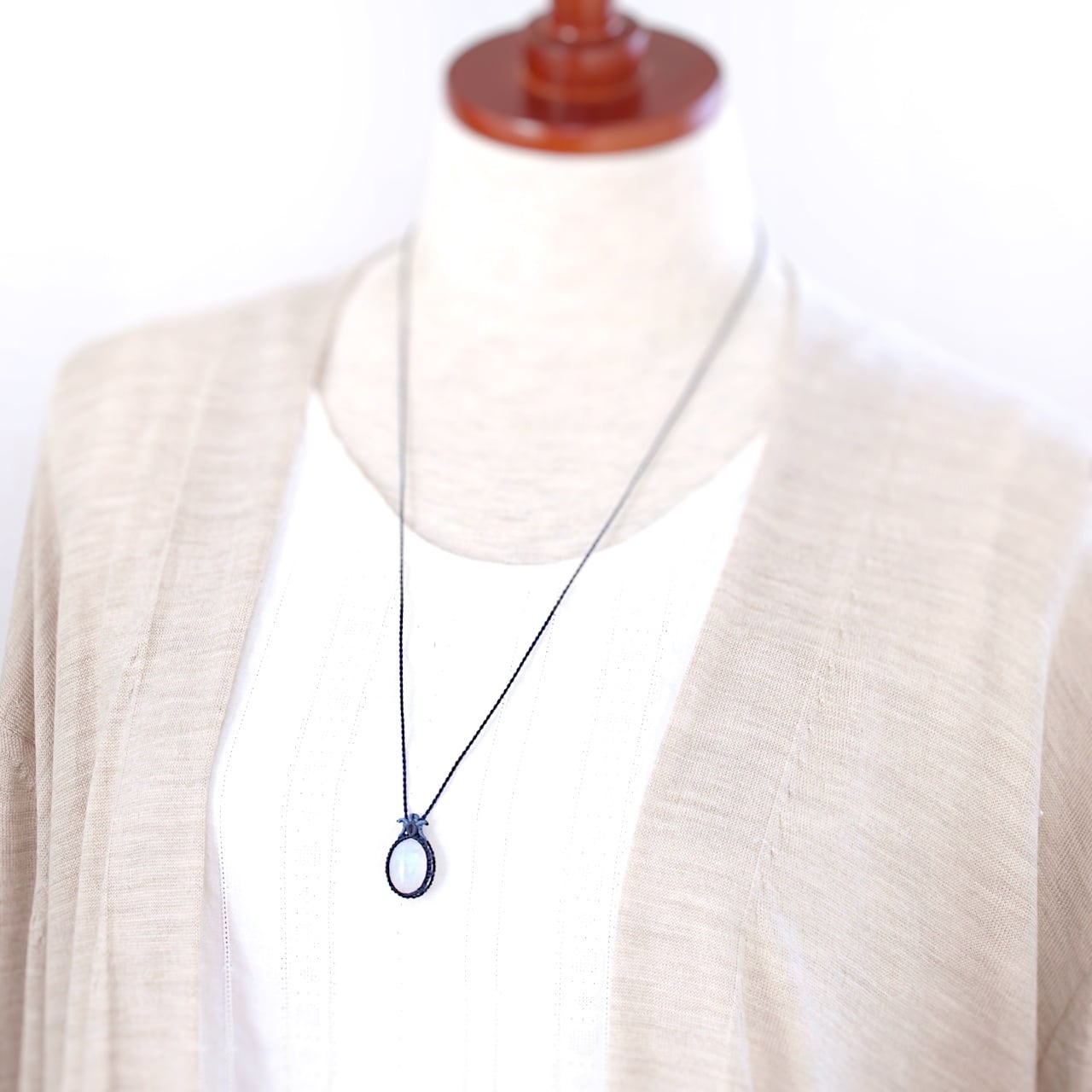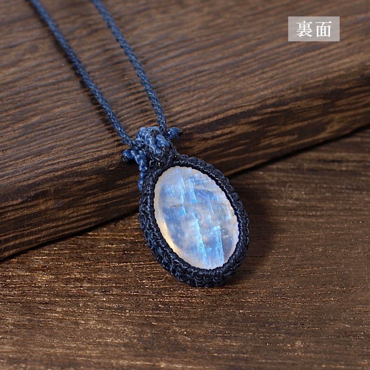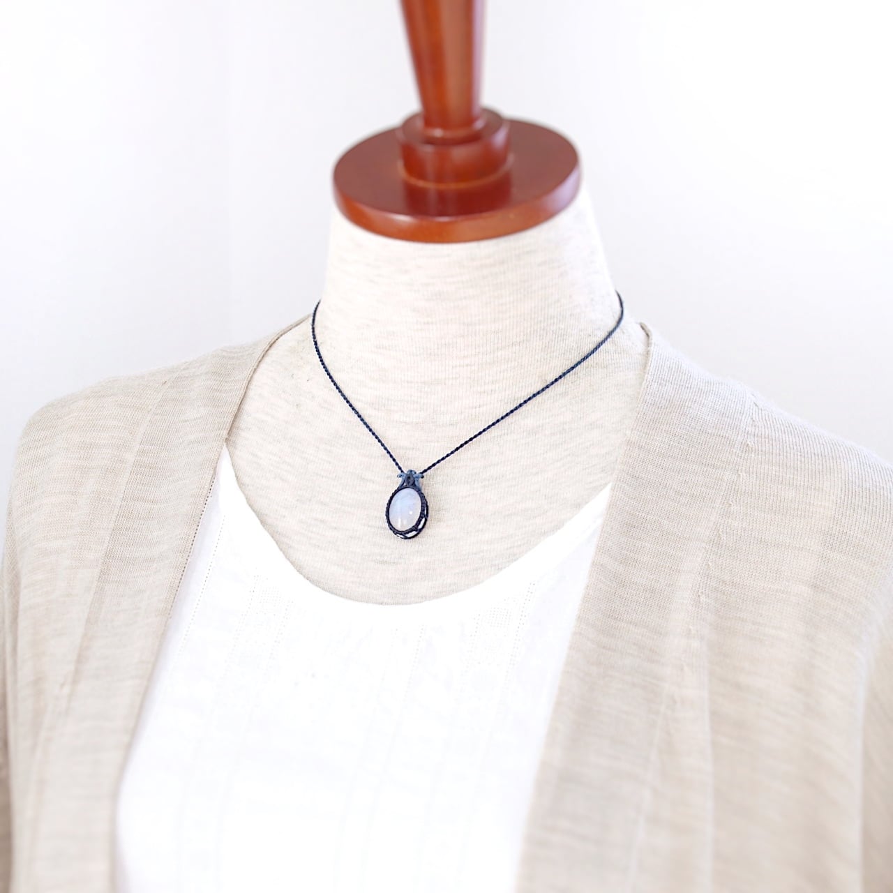 【一点物】レインボームーンストーンのオーバルルースを包み込んだマクラメネックレスNo.7