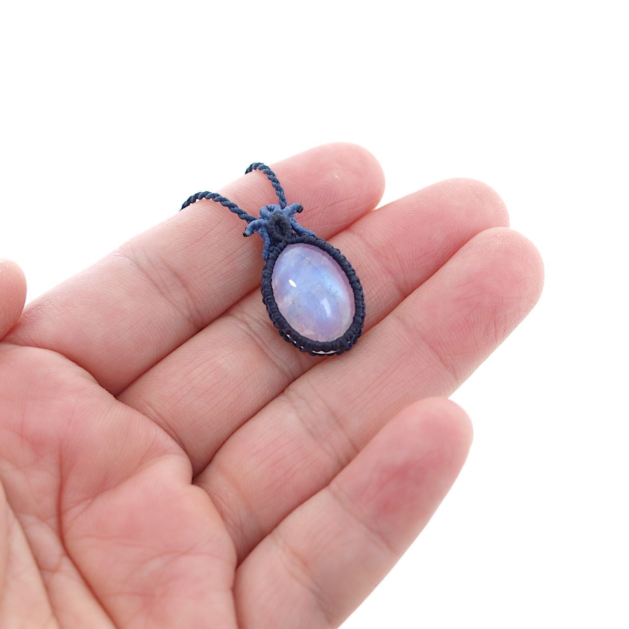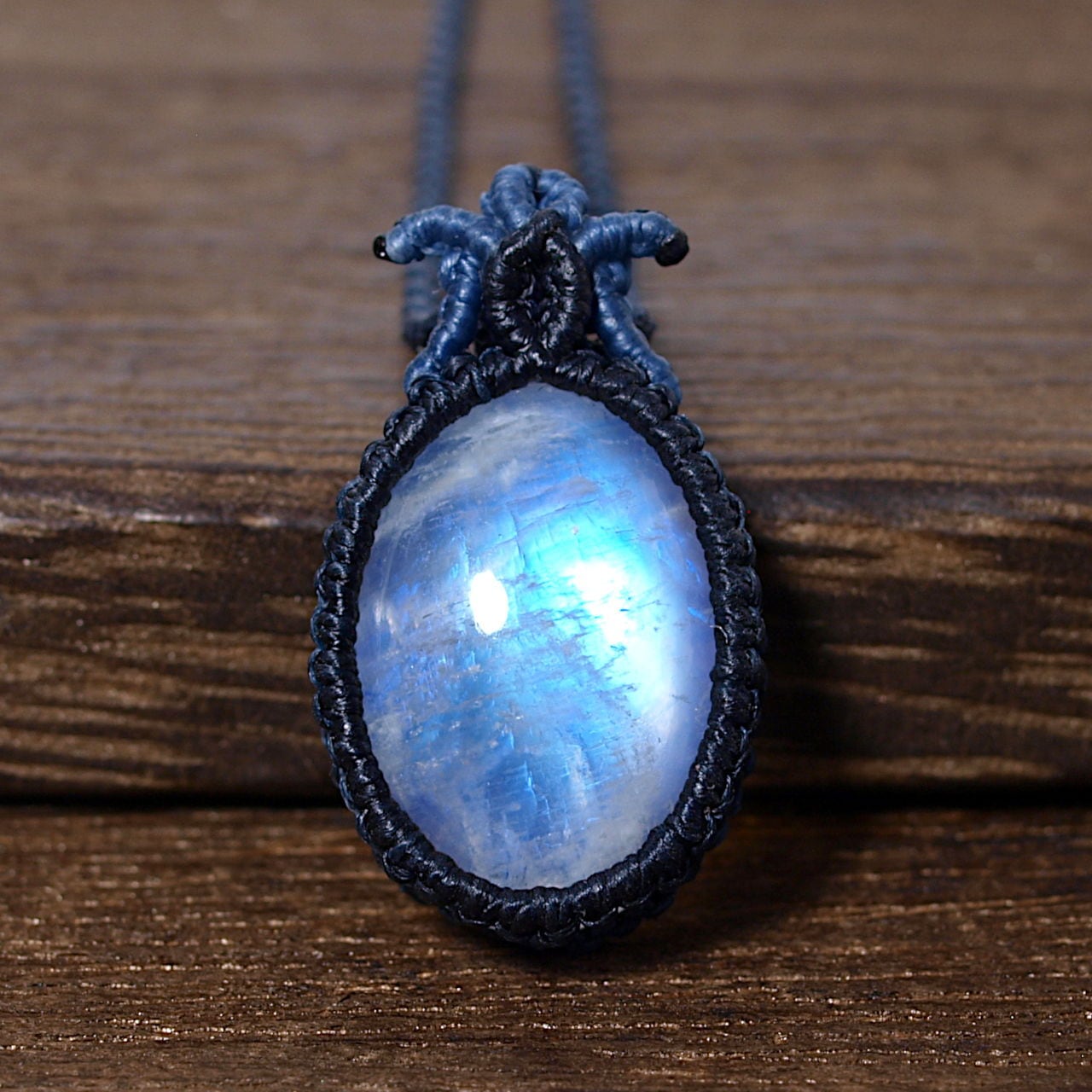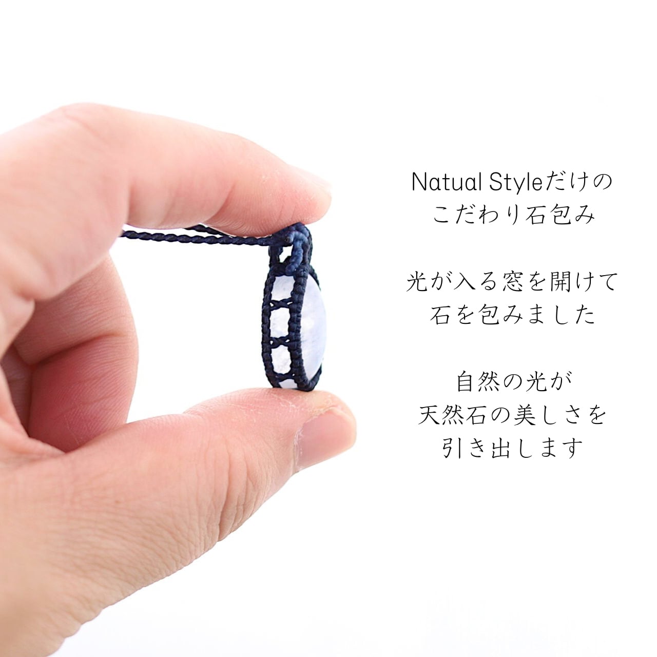 【一点物】レインボームーンストーンのオーバルルースを包み込んだマクラメネックレスNo.7