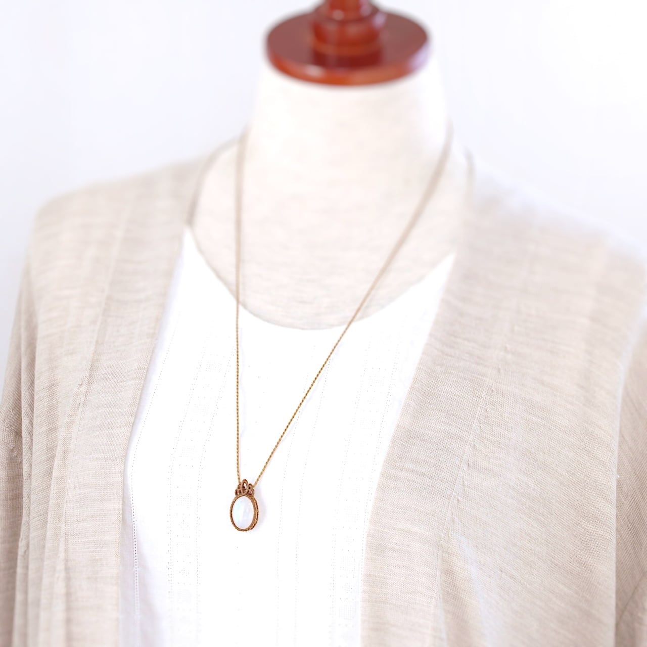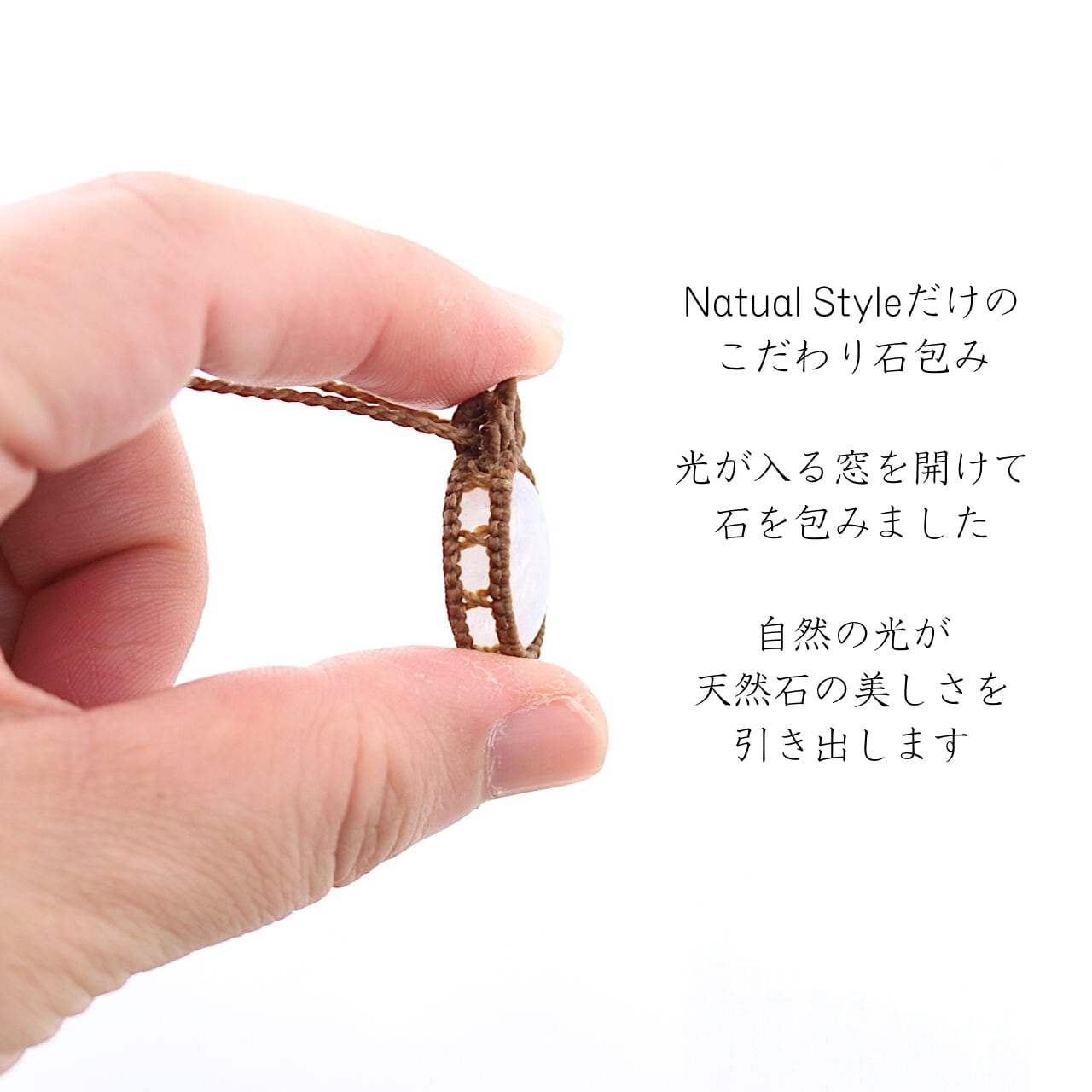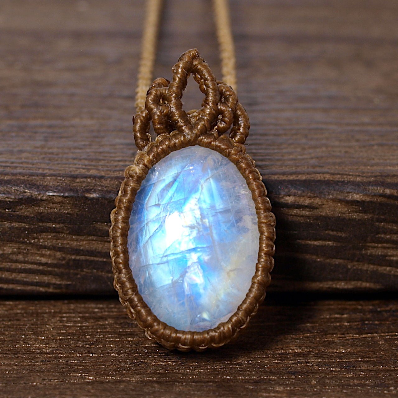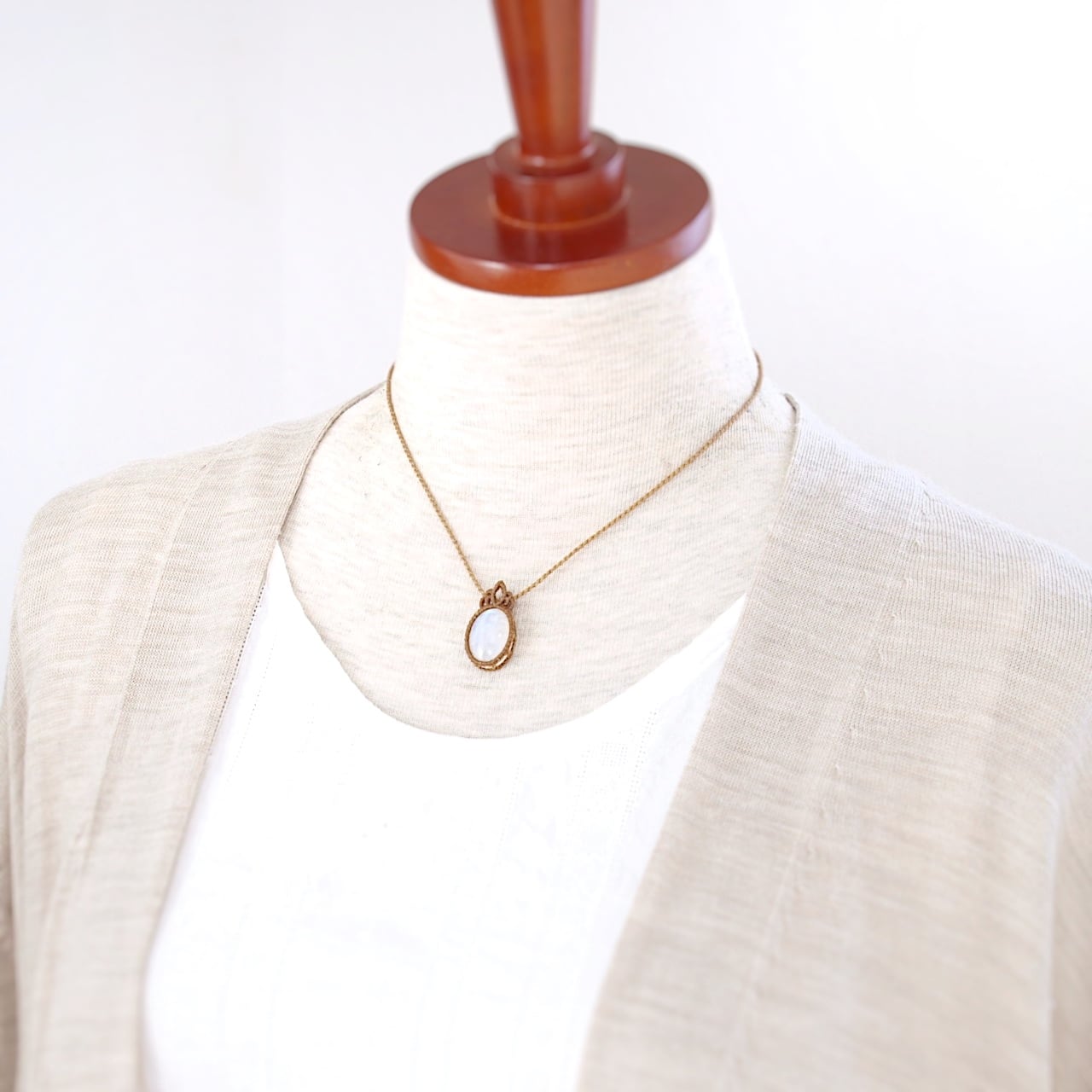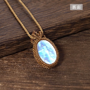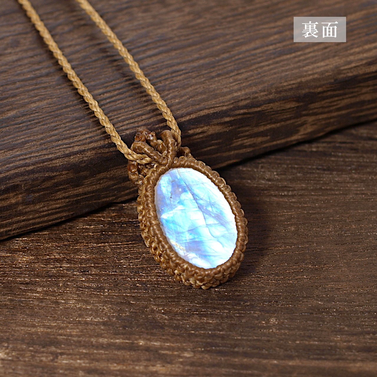 【一点物】レインボームーンストーンのオーバルルースを包み込んだマクラメネックレスNo.6