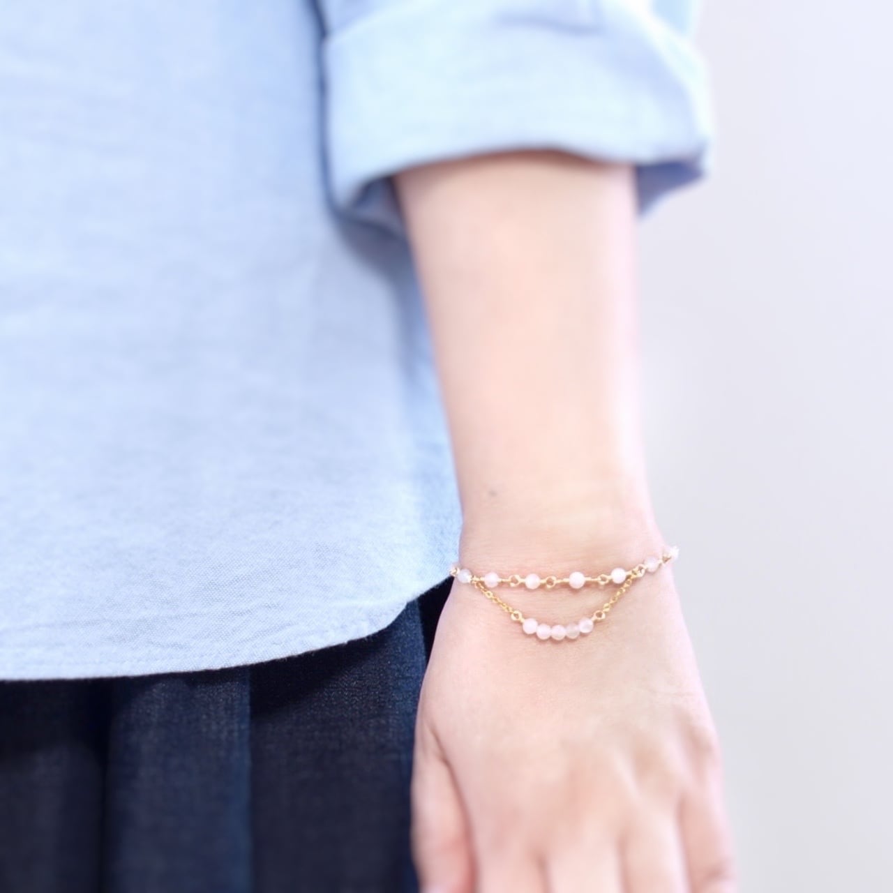 【限定】ムーンストーンをK14GFワイヤーで繋いだ2連ブレスレット