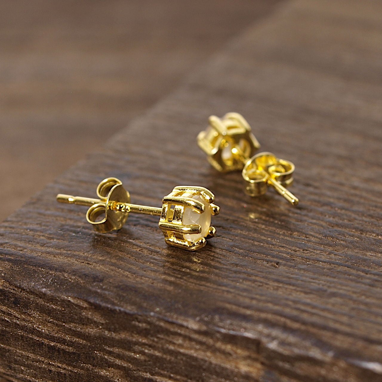 【限定】ムーンストーン爪留めスタッドピアス(K18GP)