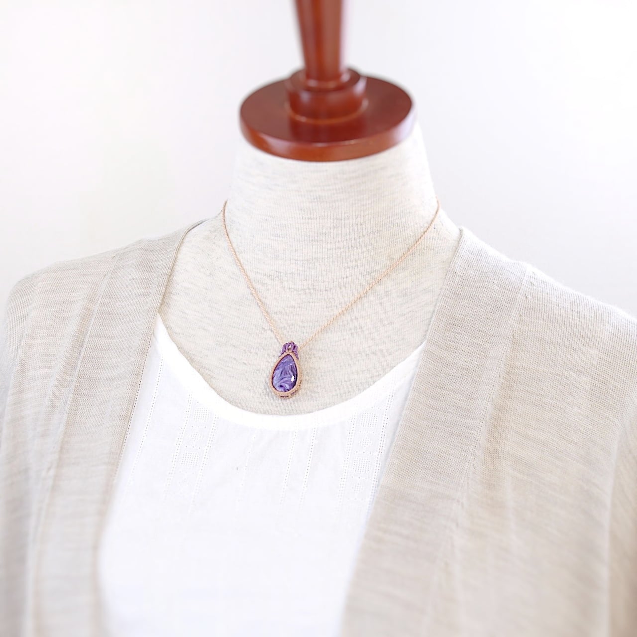 【一点物】チャロアイトのドロップルースを包んだマクラメネックレスNo.10