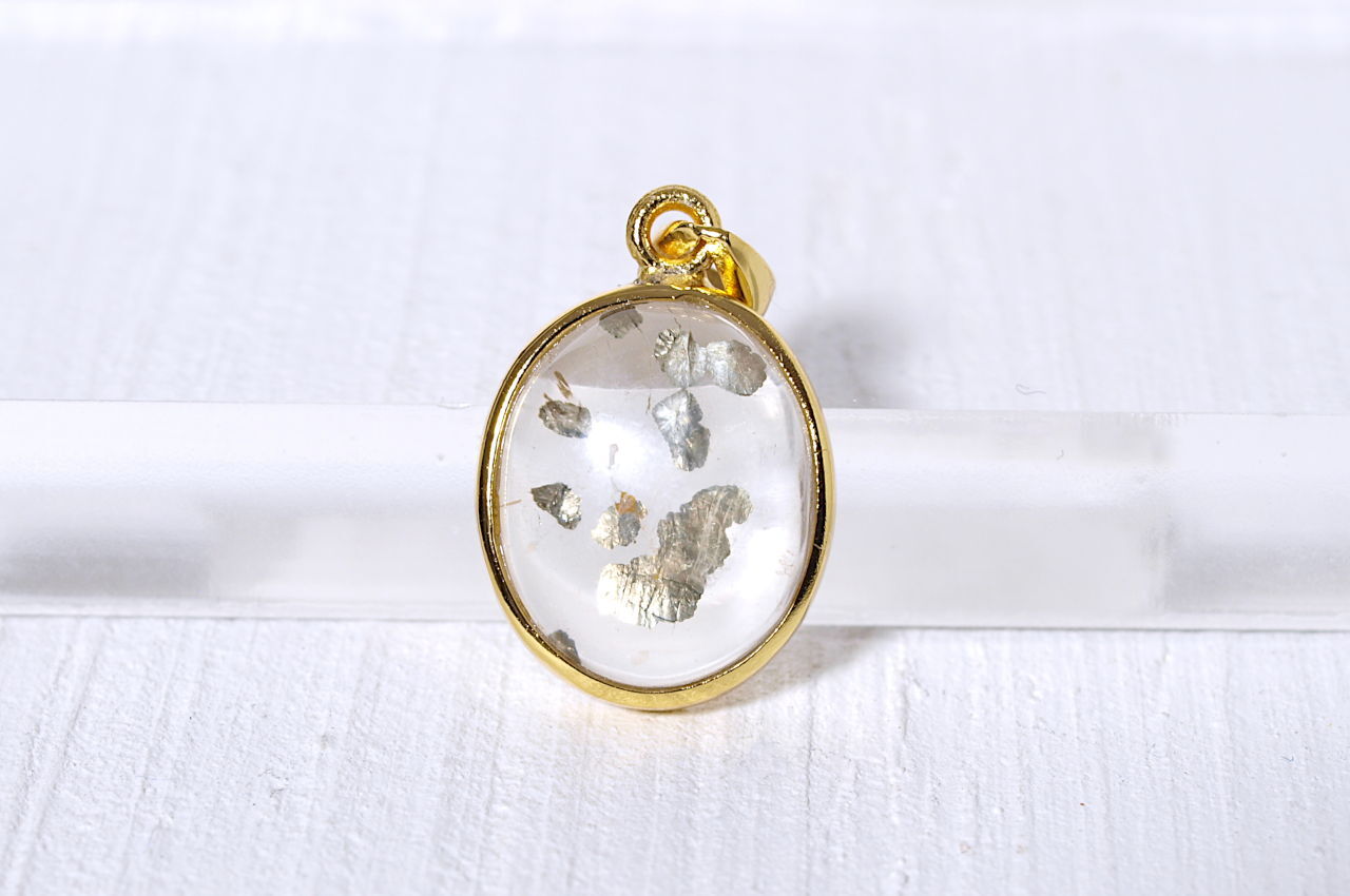 【一点物】パイライトインクォーツK18GPペンダントトップNo.1