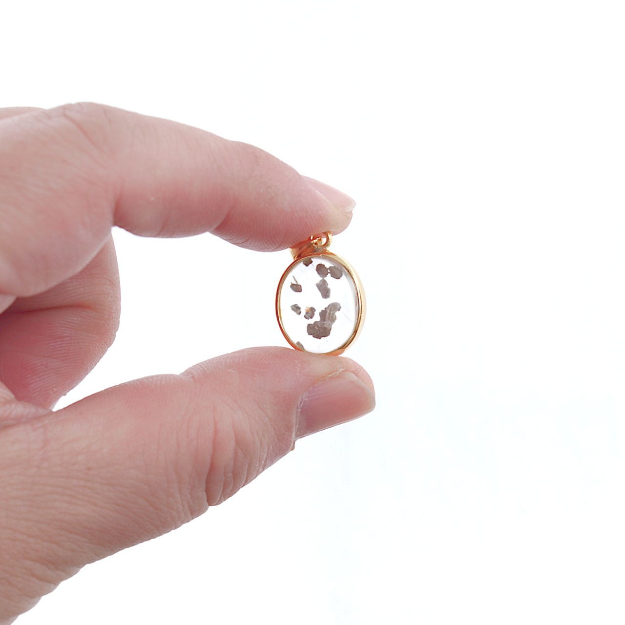 その点、このように水晶に閉じ込められた状態であれば、ずっとそのままの美しさを保ち、見た目にもパイライト独特の輝きを楽しむことができます。自然の作用って本当に不思議。まるでアクセサリーに仕立てるために、水晶がパイライトを包んでくれたような気がしてしまいます。