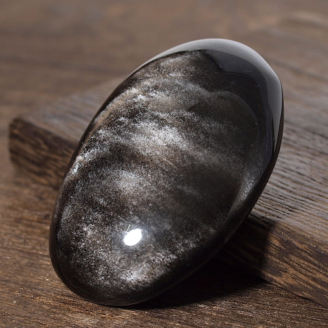 シルバーに輝くオブシディアンは、心を落ち着かせ、穏やかな気分にリセットしてくれるヒーリングアイテムです。ストレスや怒りを鎮め、冷静で澄んだ精神状態へと導くことで、直感力や判断力を高めてくれると伝えられています。周囲の意見や情報に惑わされず、物事の本質を見極められるようになるため、仕事運の向上や目標達成に力を貸してくれるでしょう。