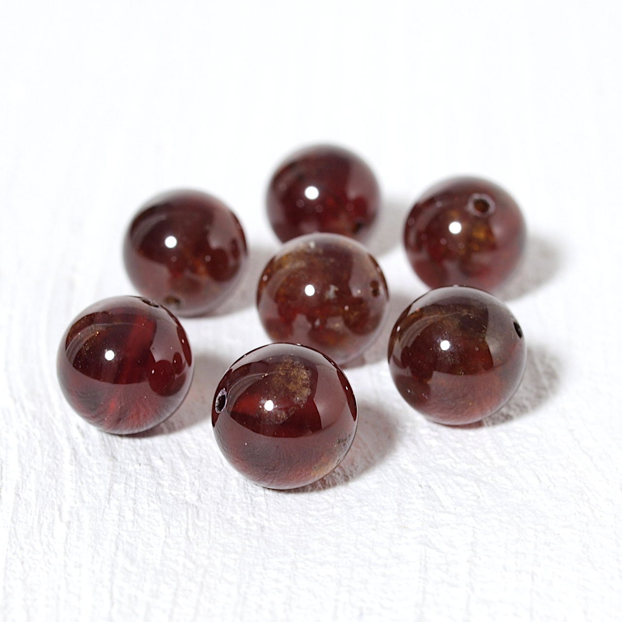 å あまり知られていないかもしれませんが、ガーネットグループの石は10種類以上もあります。つまり「ガーネット」という名前はこれらの鉱物のグループ名(総称)です。中でも有名なのは、グロッシュラーガーネット・アルマンディンガーネット・パイロープガーネット・ロードライトガーネットなど。それぞれ、色あいや成分などに違いがあります。なかにはピンクやオレンジ色、グリーンのガーネットあり、同じ石とは思えないほど多彩です。