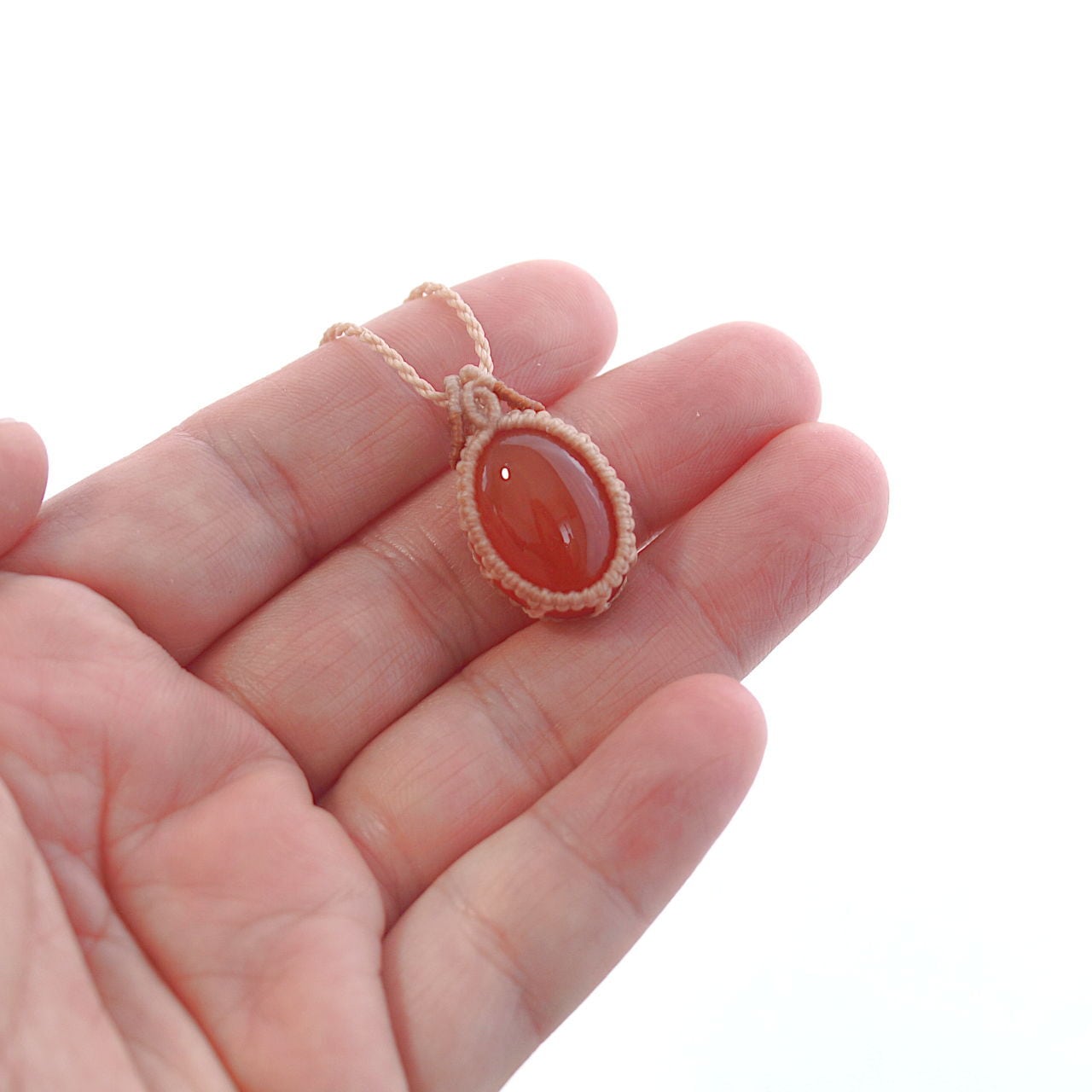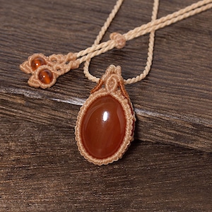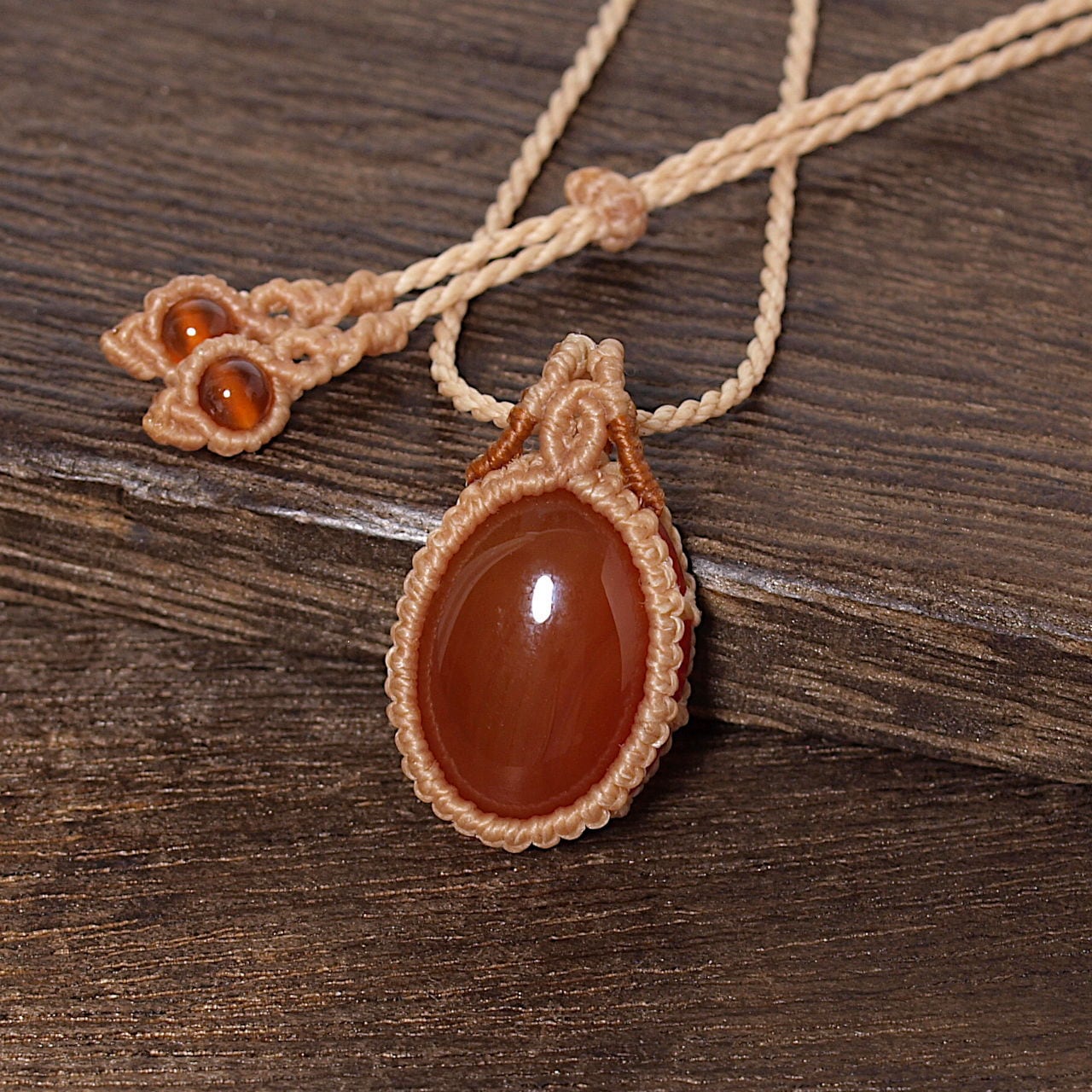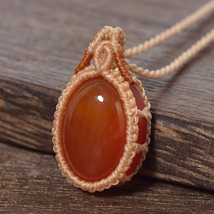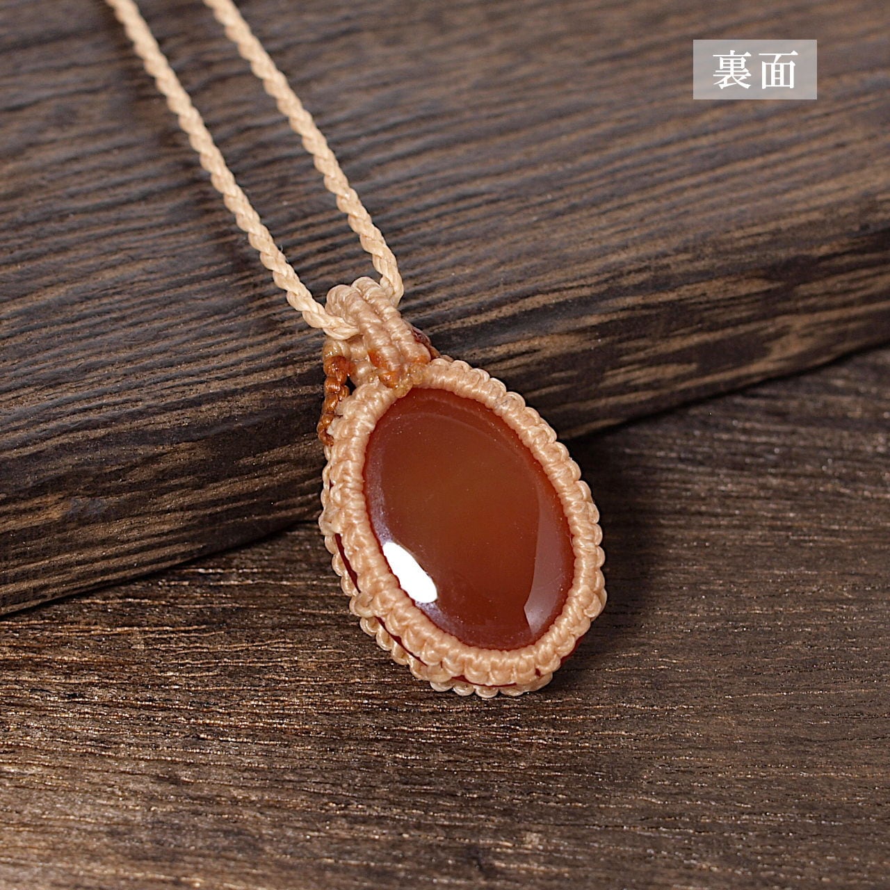 【一点物】カーネリアンのオーバルルースを包んだマクラメネックレスNo.1